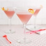 Strain into a martini glass or coupe glass and garnish with an orange peel.