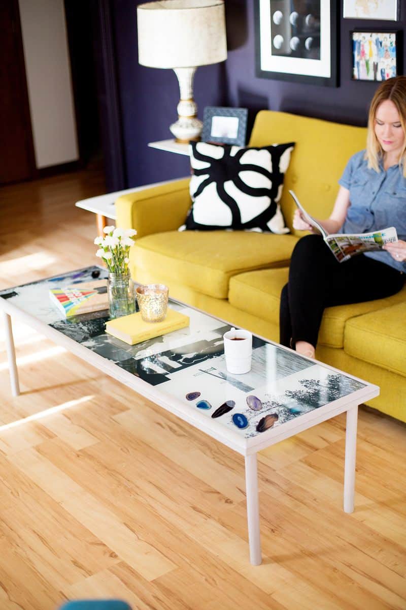 And it’s a good idea to press your finger into an edge of the table before placing anything heavy on it, just to make sure yours is, indeed, fully dry. Not too bad, right? Thanks for letting me share our new coffee table with you. xo. Emma