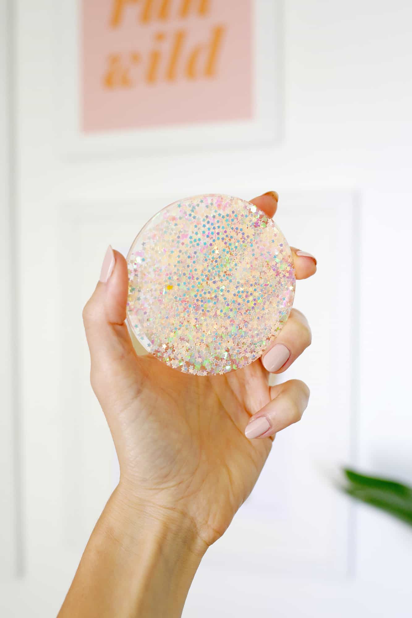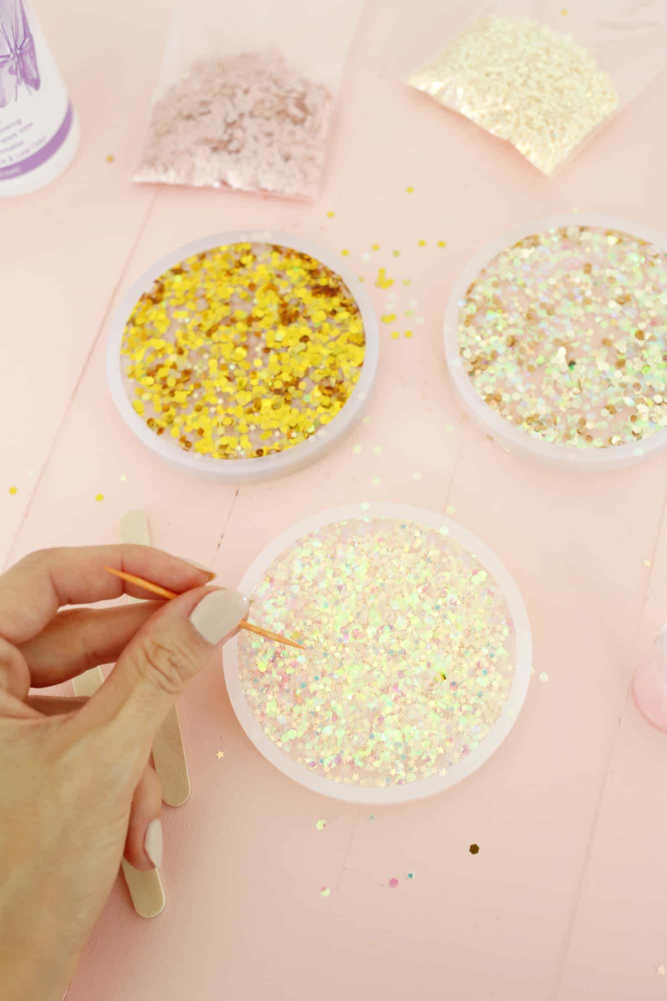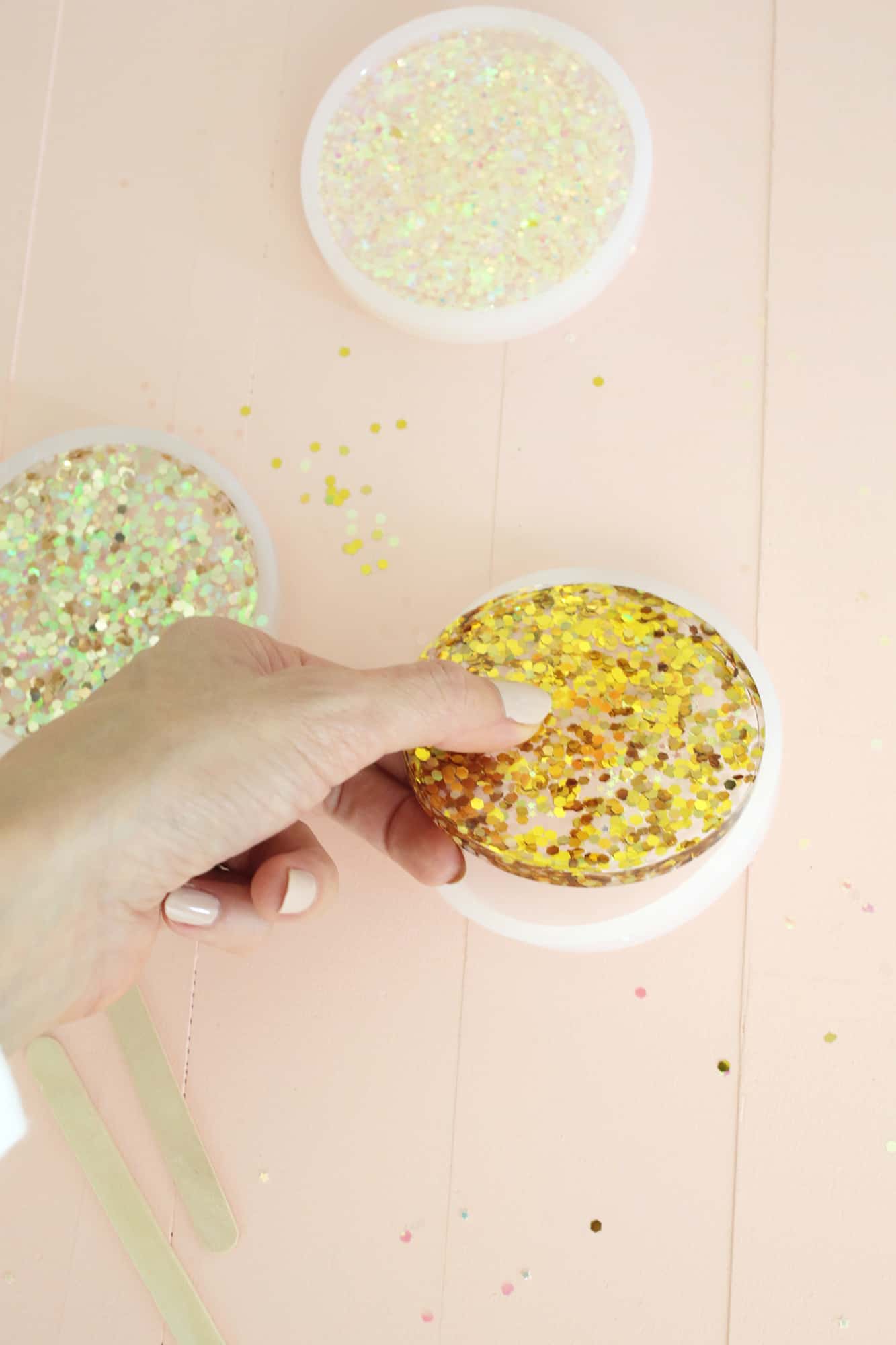Also, you may want to correct the title – acrylic is a completely different type of plastic than epoxy. These are Epoxy Glitter Coasters, not at all acrylic ones