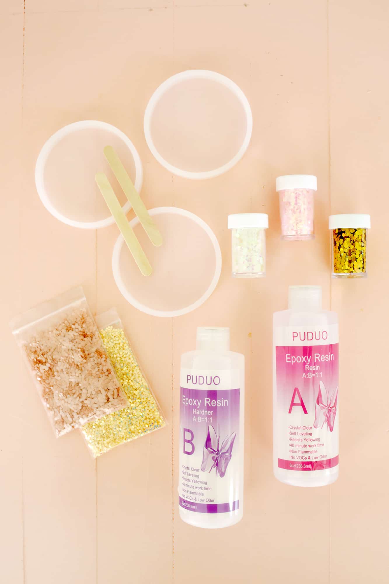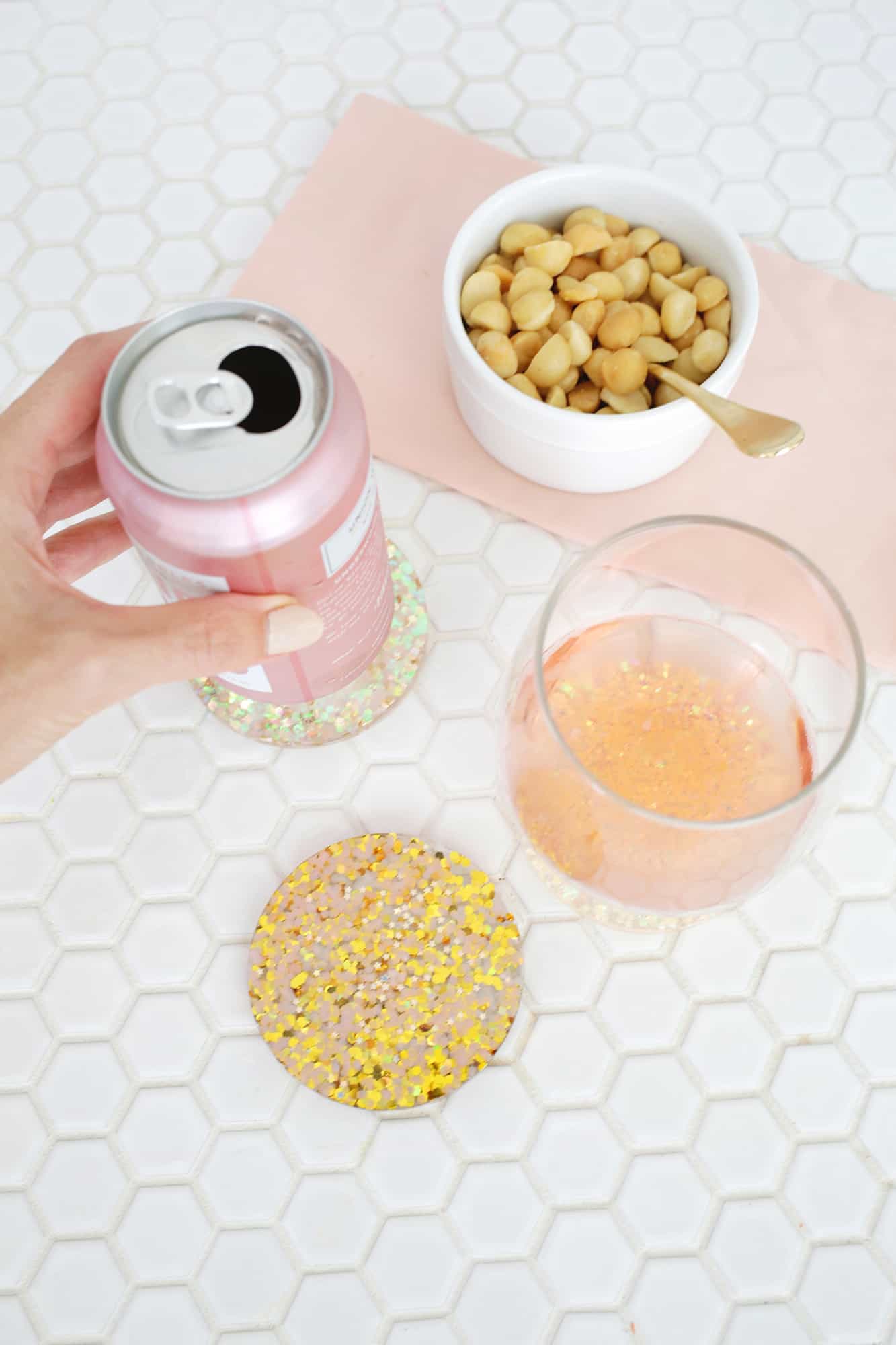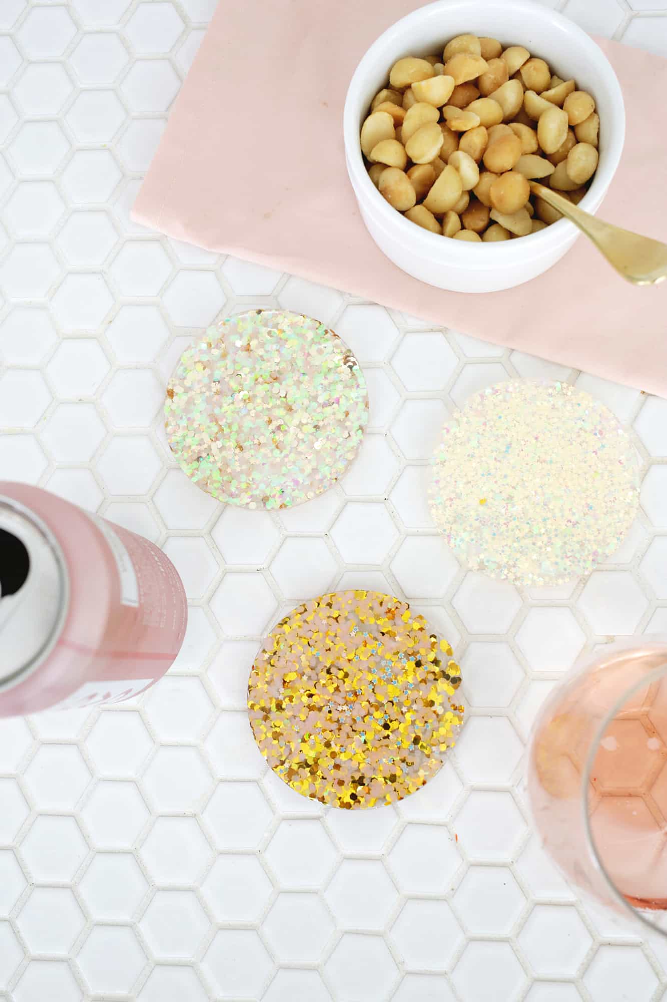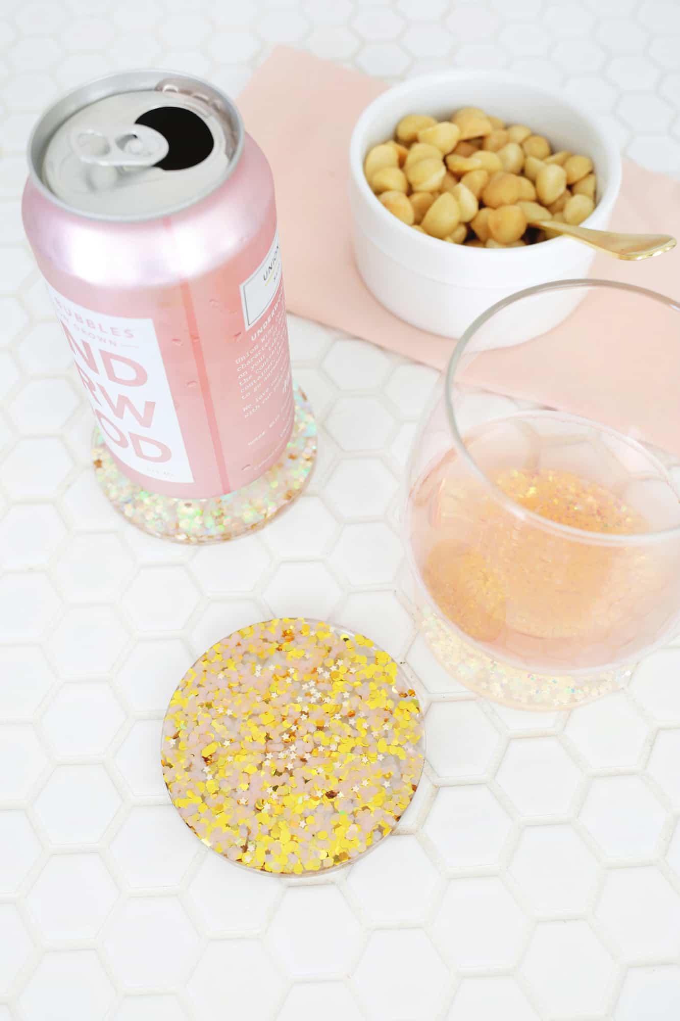 Also, you may want to correct the title – acrylic is a completely different type of plastic than epoxy. These are Epoxy Glitter Coasters, not at all acrylic ones