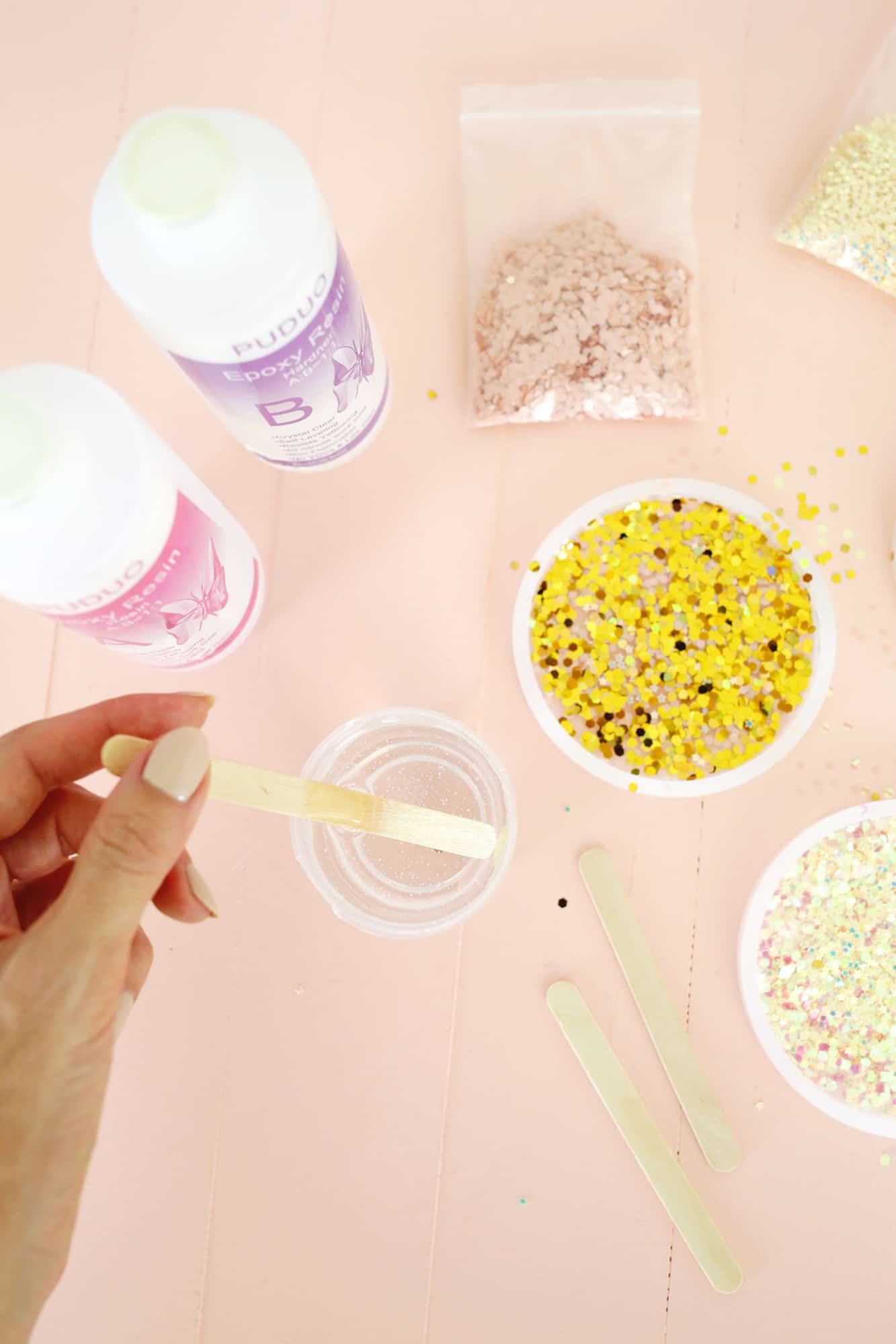 - Follow the directions on the package to mix up your epoxy to get it ready to pour!