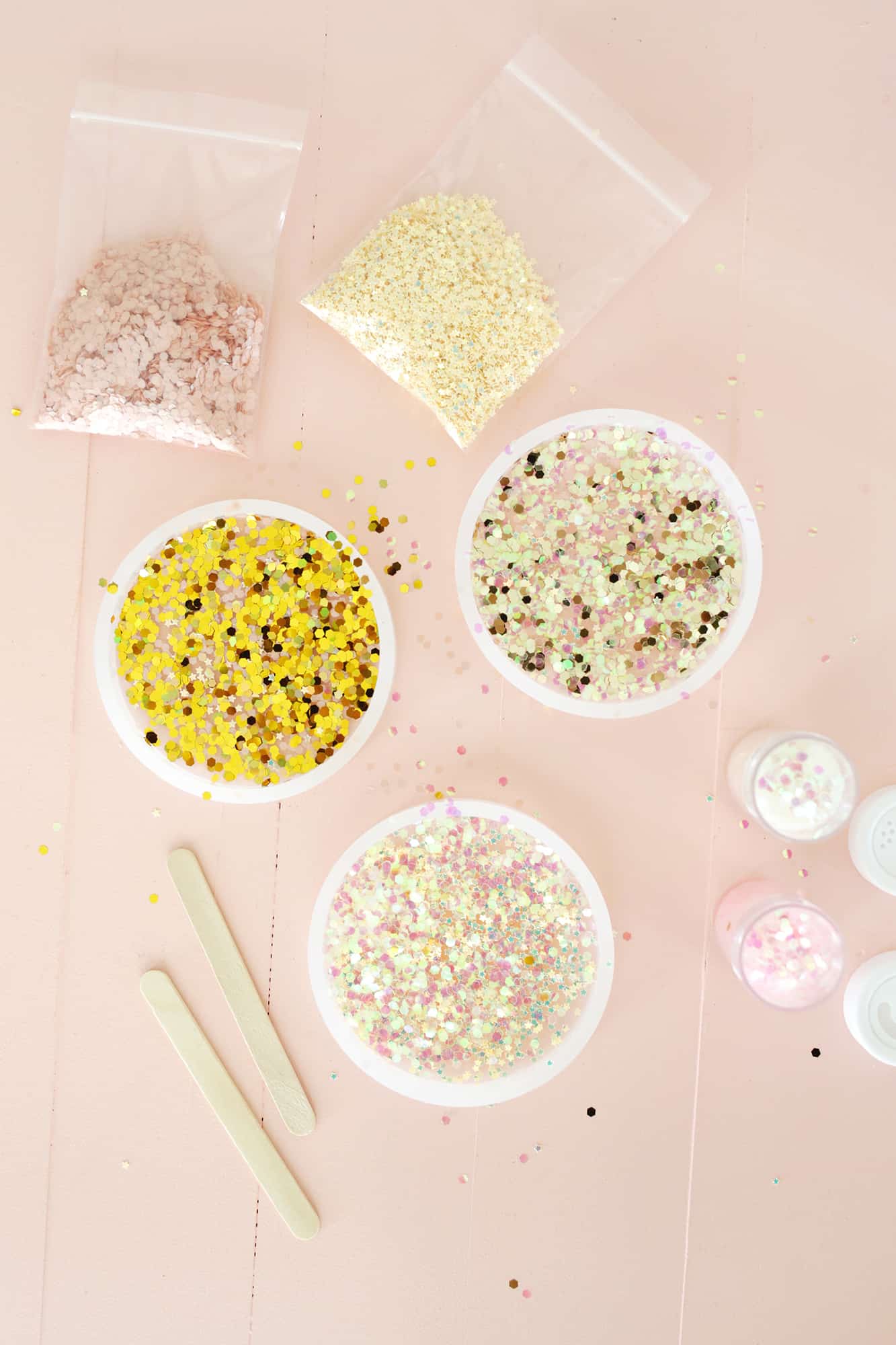 - glitter of your choice (I used gold chunky glitter and this and this color)