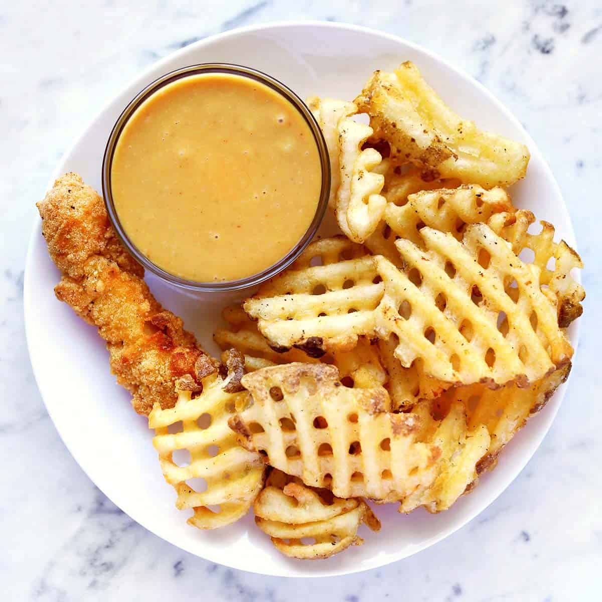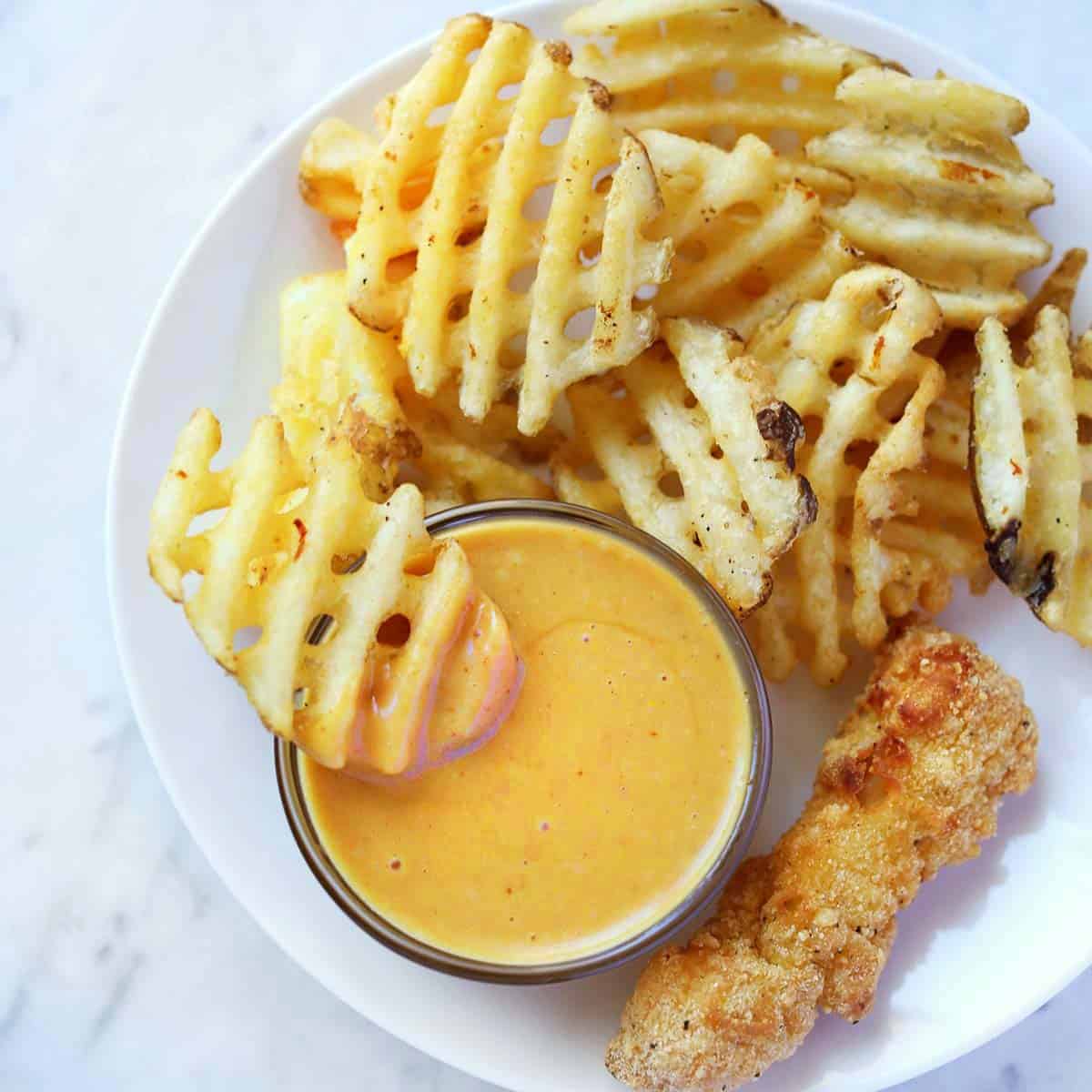 Related: I love this sauce recipe on everything from baked chicken, air fryer wings (as the dipping sauce) to air fryer French fries. It’s great on store-bought air fryer fries, like waffle fries, too! Try our spicy mayo recipe.