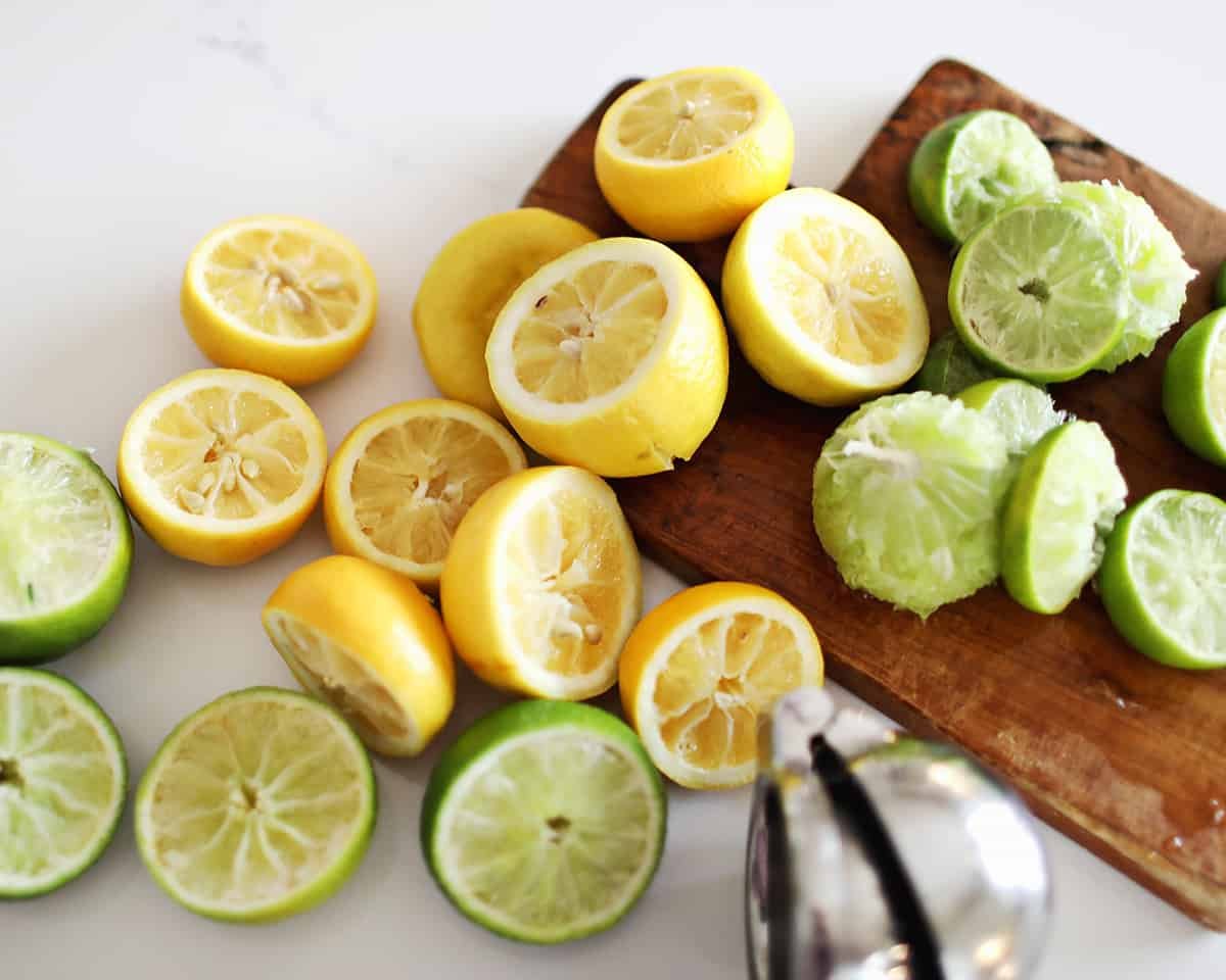 - To make this citrus simple syrup, begin by juicing lemons and limes. I use a hand juicer.
