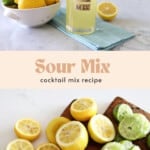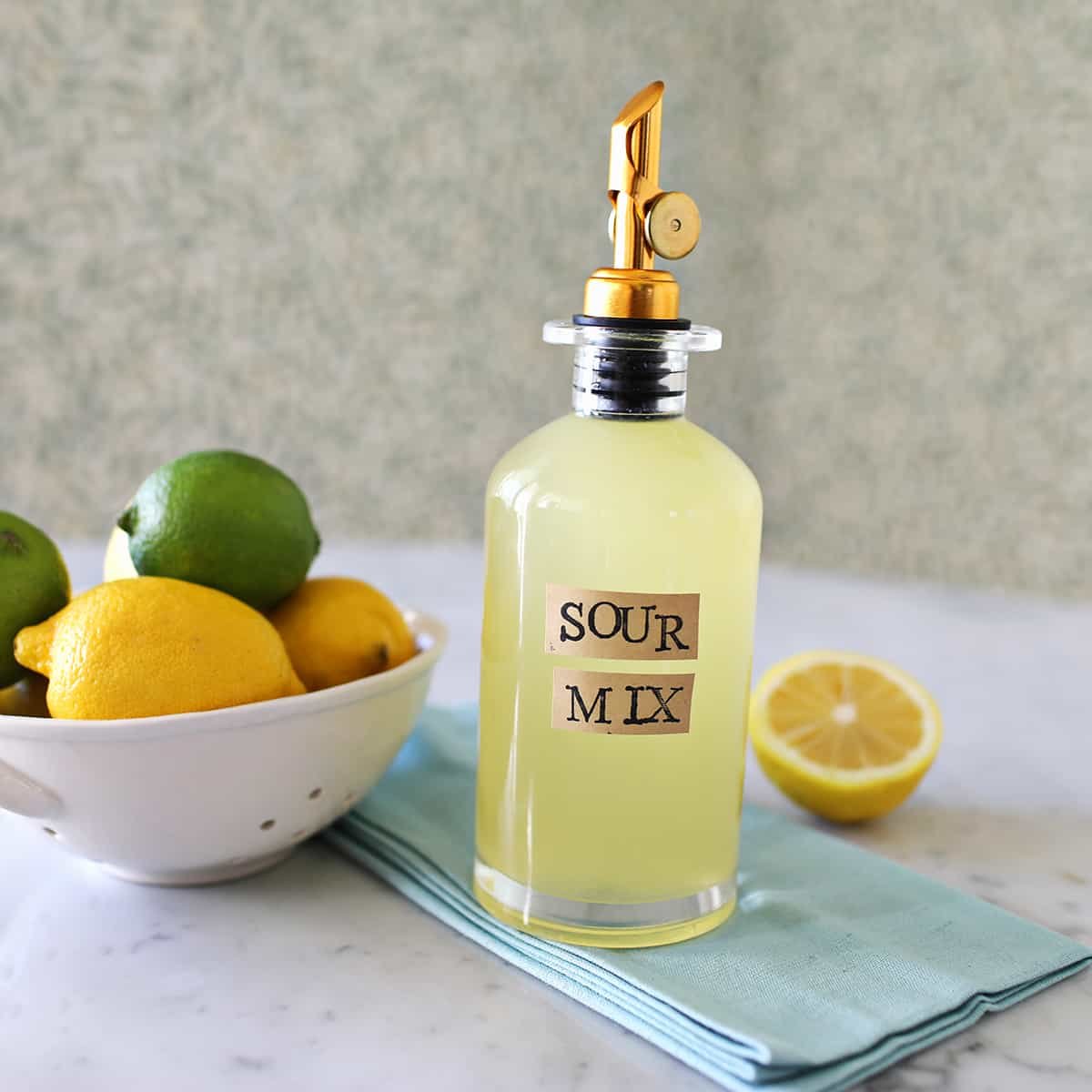 After today, you will never buy sour mix again! Making your own homemade sweet and sour mix is easy to do and so worth it. It’s much more delicious than store bought mix and you can whip up a batch in your kitchen with a few ingredients.