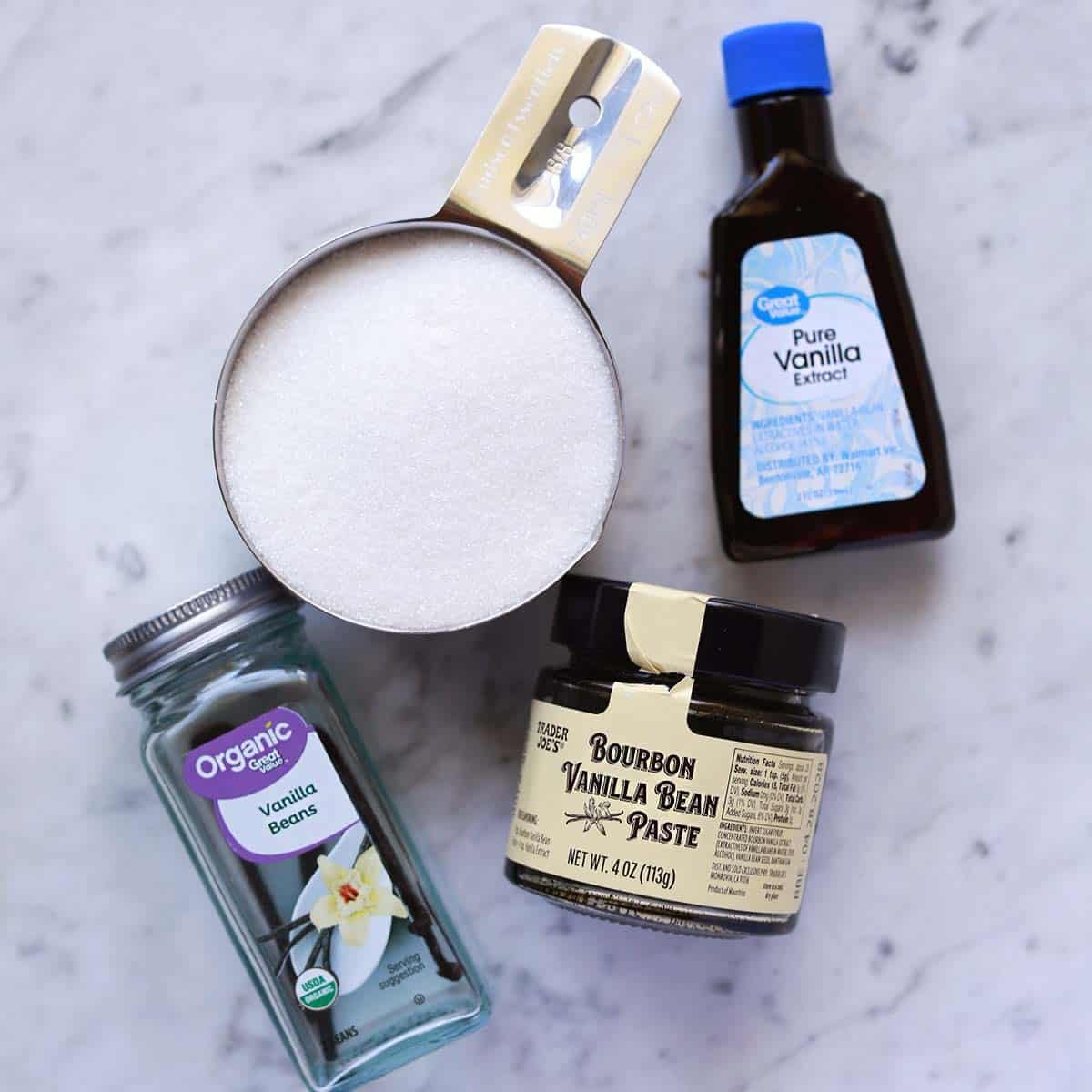 - Vanilla bean paste, vanilla bean pods or vanilla extract