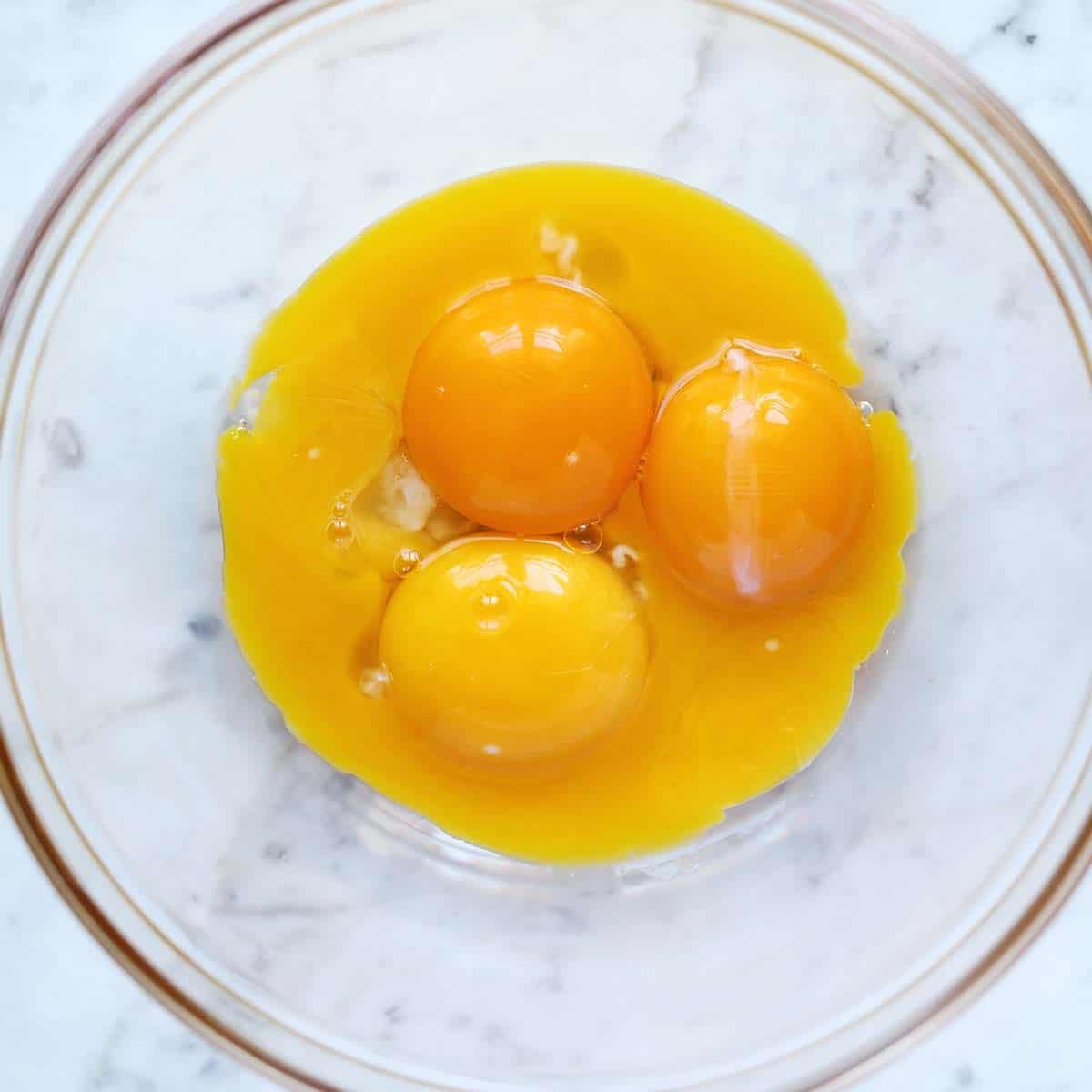 - In a small mixing bowl, store the egg yolks, separating them from the whites. Set aside.