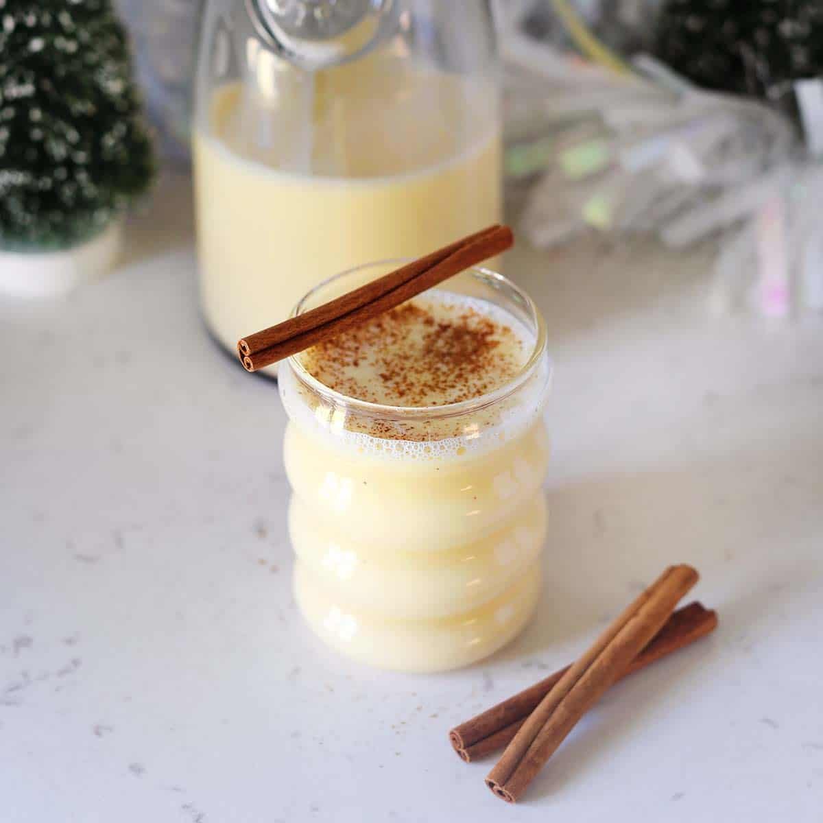 Pour the eggnog through a fine mesh strainer to remove any sediments and the cinnamon stick. Store in the refrigerator.