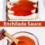 - If you feel the sauce isn’t thickening up to your liking, you can whisk together 1 teaspoon cornstarch with 2 teaspoons of water, then pour this into the sauce and continue to cook (before adding the lime juice) until it thickens to the level you prefer. I like my enchilada sauce thick enough to coat a spoon, but not like syrup, so I rarely find this necessary.