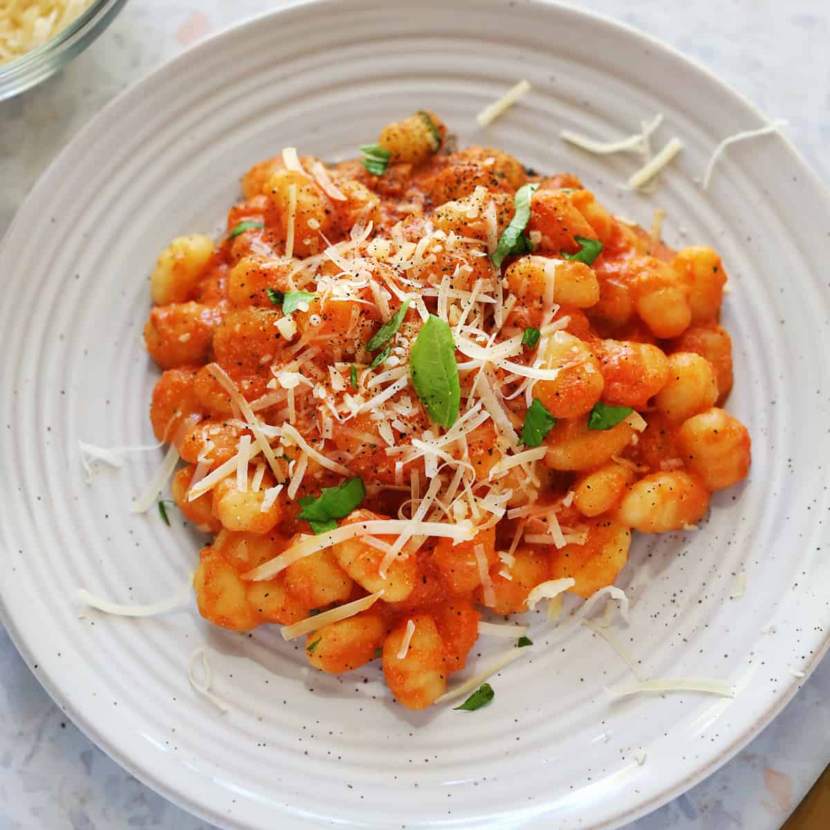 I think vodka sauce is the perfect blend of a tomato sauce mixed with a creamy element. While it’s not simply tomato sauce and Alfredo sauce mixed together, it is delicious over pasta or gnocchi.