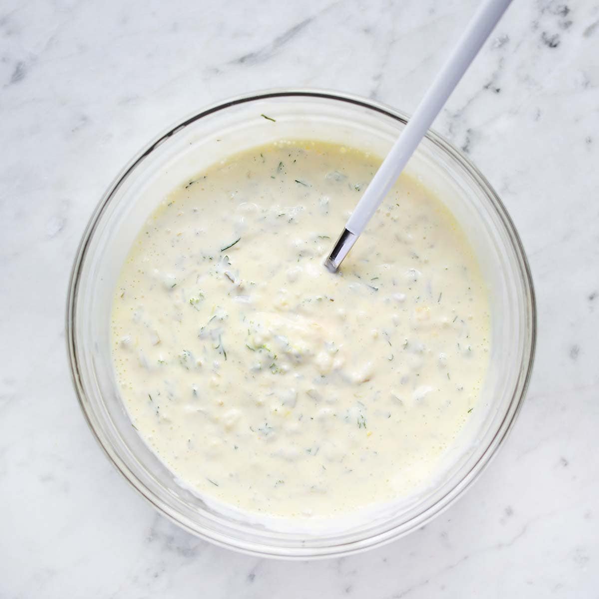 Tartar sauce is a creamy mayo-based sauce flavored with dill pickles (or relish) and a few fresh herbs. I like my tartar sauce more on the dip-side, not so thick that you have almost scoop it. But, that’s the great thing about making your own—you can easily customize this to your preferences.