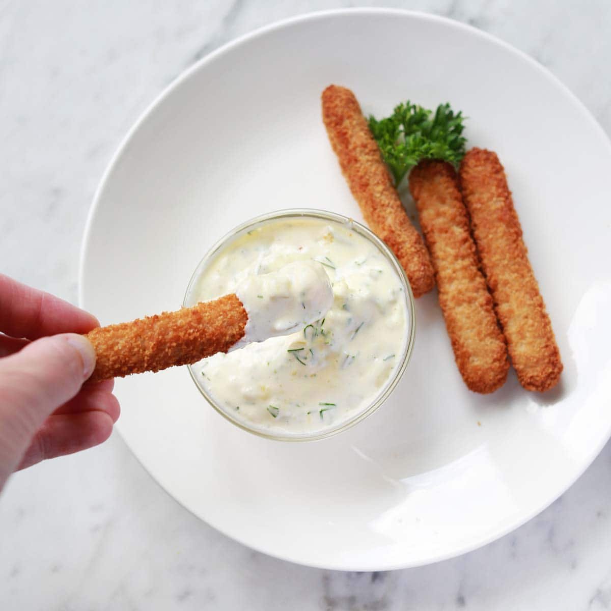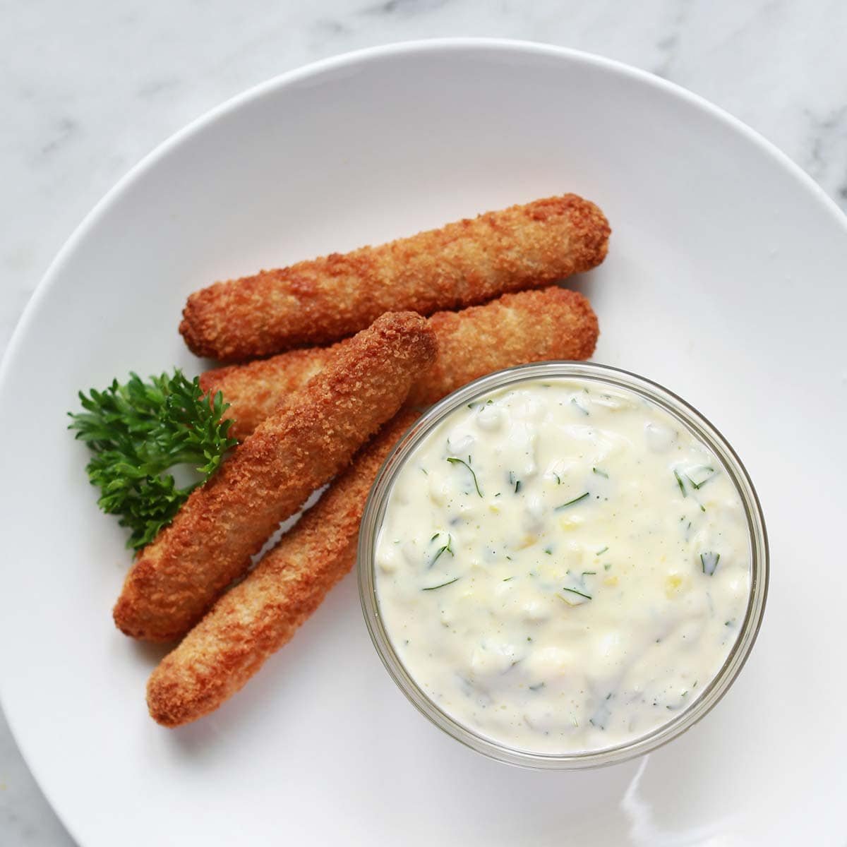 Fish sticks are a staple at my house currently (LOL) so this homemade tartar sauce recipe comes in handy! Although this easy tartar sauce is great on all sorts of dishes like fish tacos, salmon burgers, tuna cakes, or air fryer fish. Level up your meal with homemade hushpuppies.