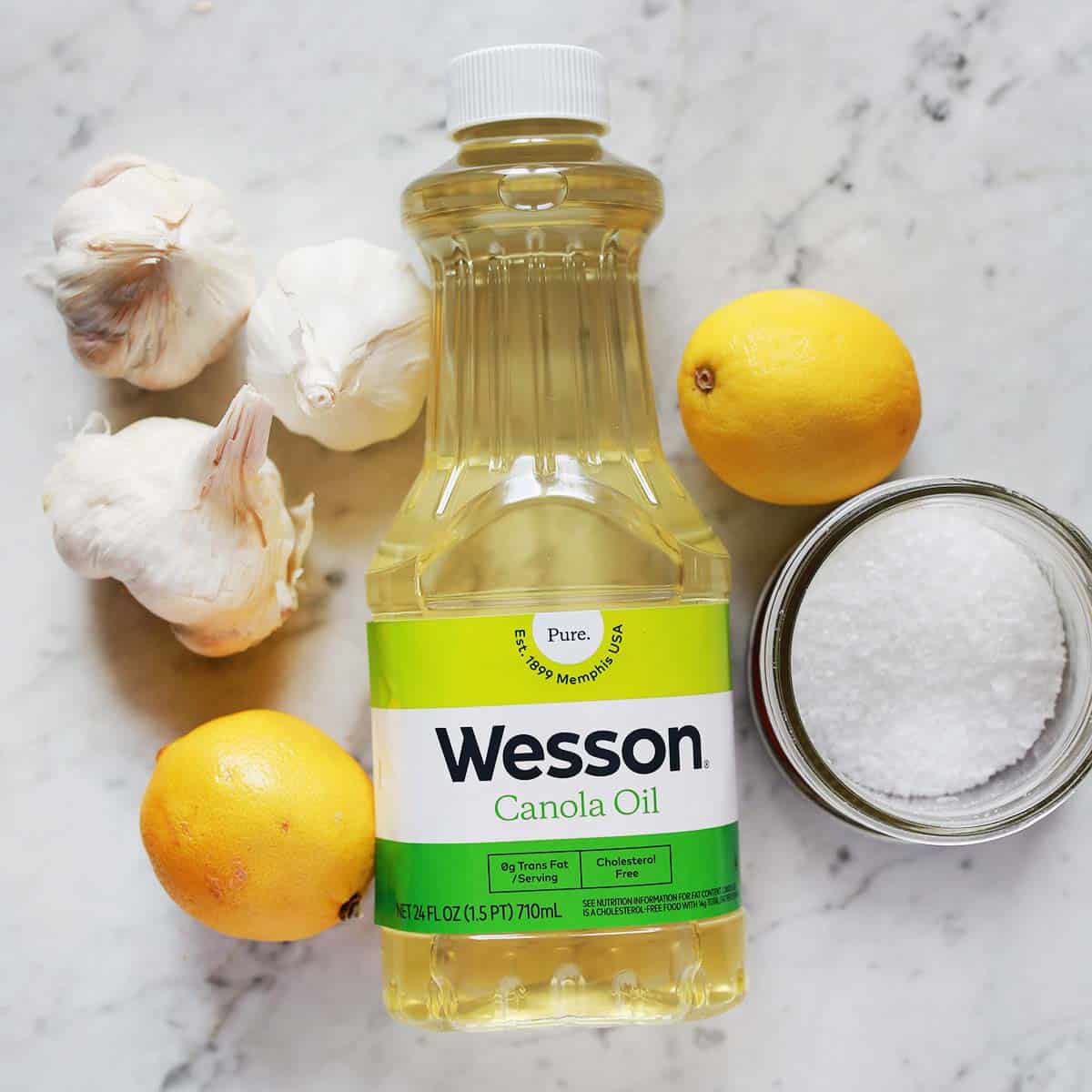 While I prefer to use a plain flavored oil in this recipe (like canola or safflower), you could use something with more flavor like olive oil or avocado oil to blend those flavors with the garlic and lemon.