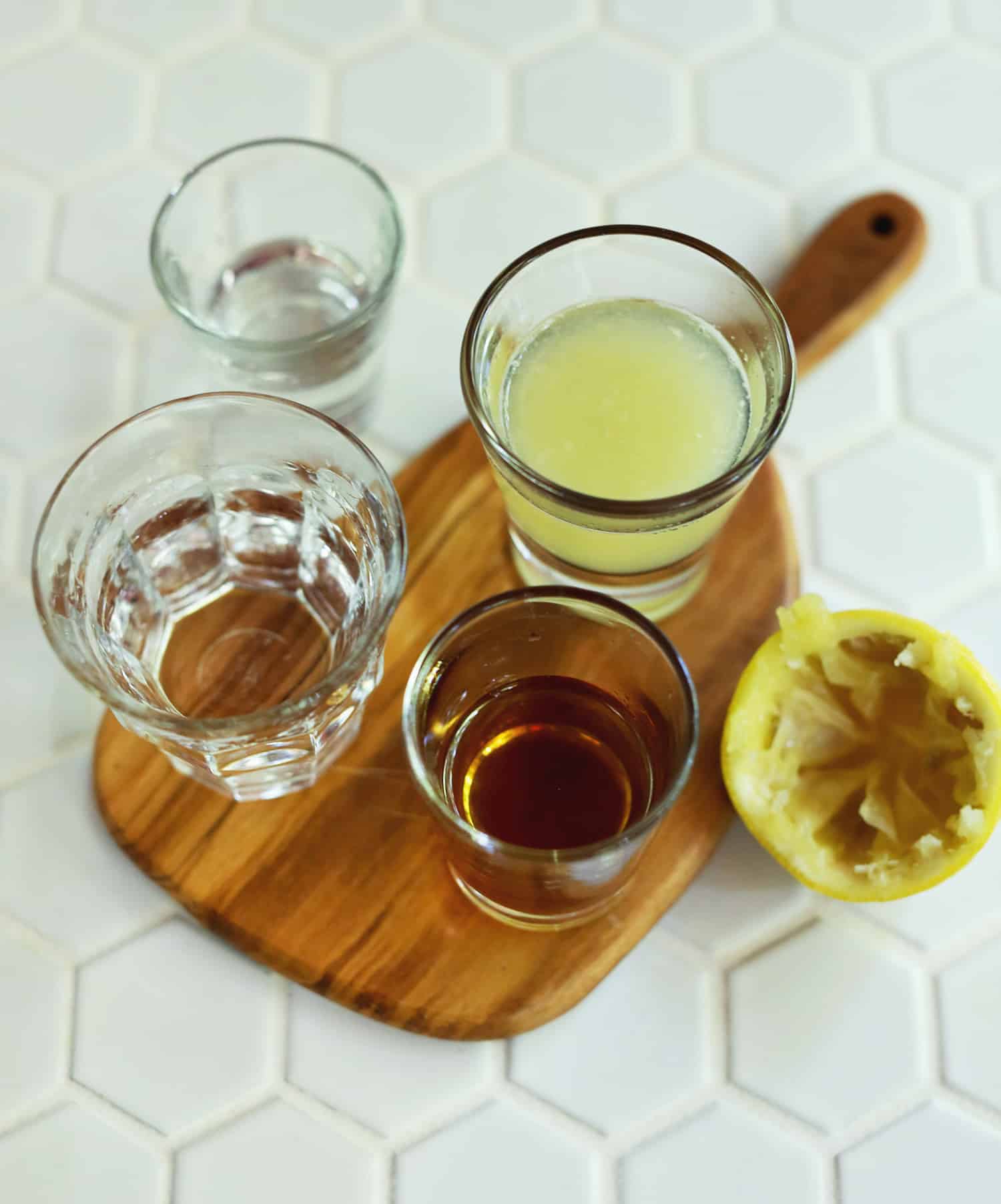 In a small saucepan combine equal parts granulated sugar and water. Simmer on medium heat until the sugar is completely dissolved. Once the syrup has cooled store it in a glass jar in the refrigerator. Get the full instructions for simple syrup or honey simple syrup.