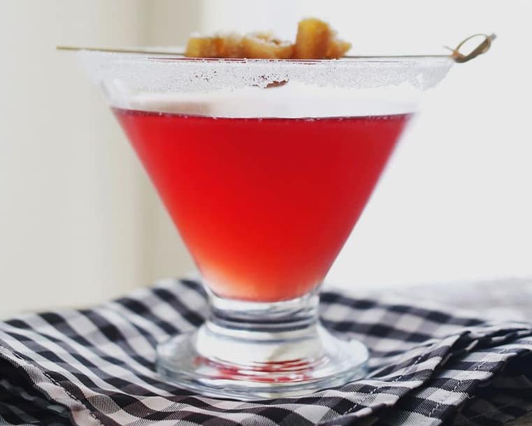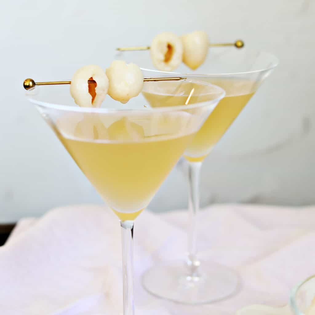 This fruity and floral flavored martini is made with vodka, orange liqueur, lychee puree, and lychee fruit. It’s magical!