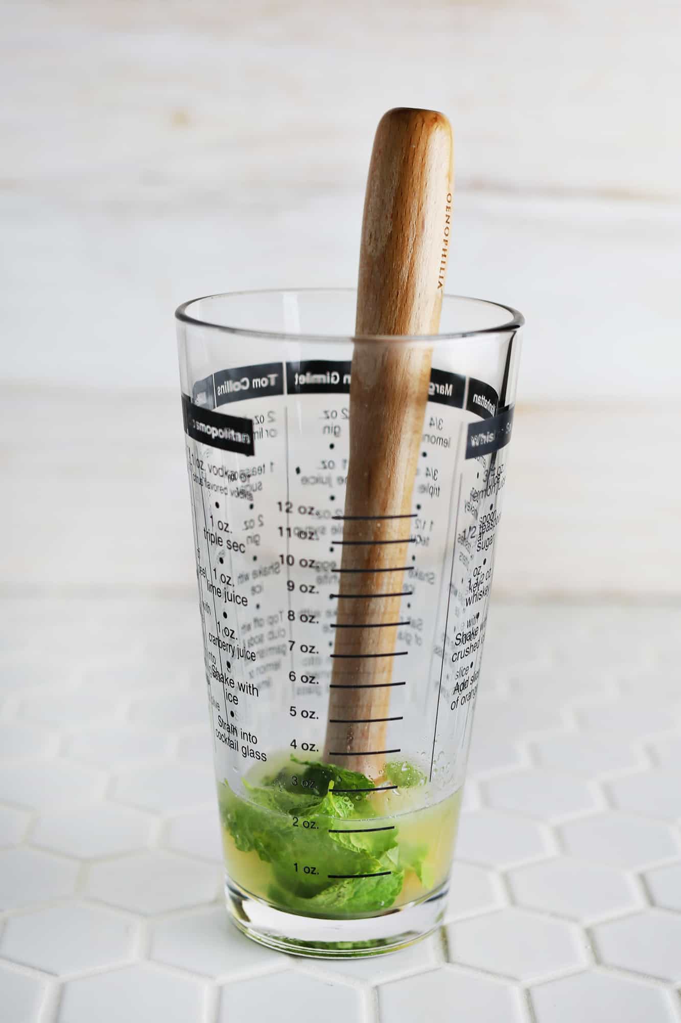 The goal is to smash the mint leaves in the mix so they release their oils, as this enhances the flavor and the aroma.