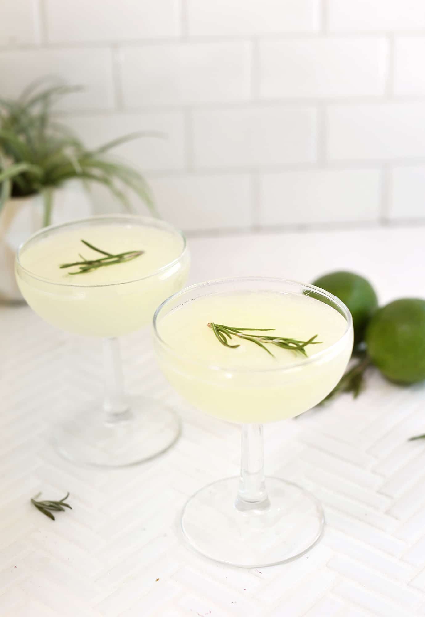 - Rosemary Gimlet: Add some pieces of fresh rosemary to your simple syrup while preparing. Add more pieces to the cocktail shaker when shaking the gin, lime juice, and simple syrup mixture. Garnish with (you guessed it!) a piece of fresh rosemary.
