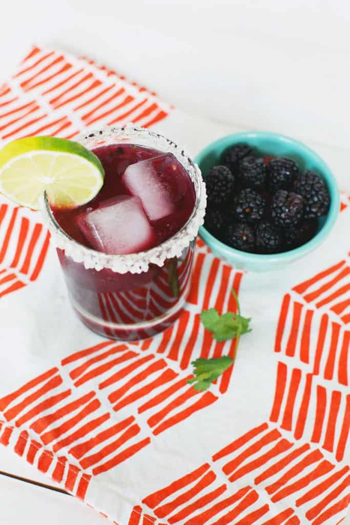 A blackberry cilantro margarita is a combination of tart, sweet, smoky, and fun. It’s made with muddled fresh blackberries, Cointreau, and cilantro. It’s like a garden in a glass!