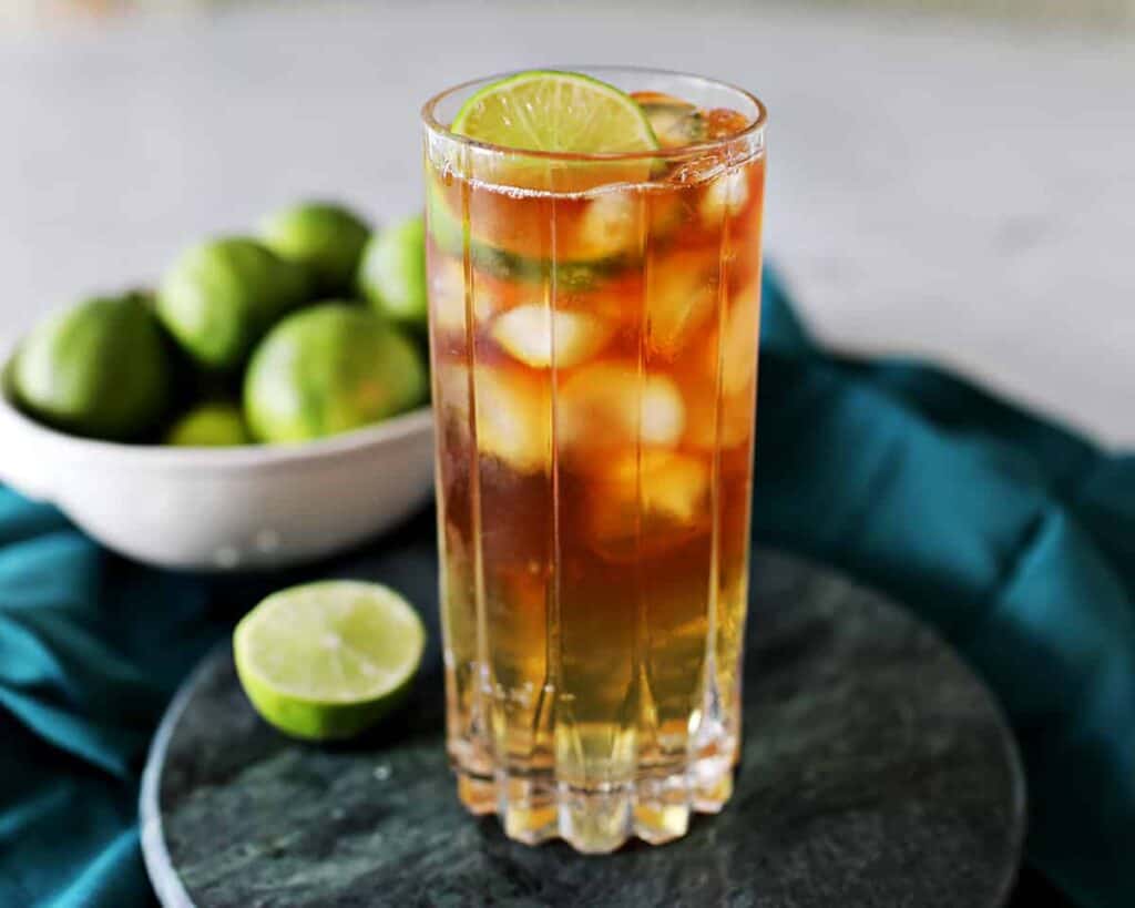 The classic dark and stormy cocktail is made with lime, dark rum, and ginger beer. It’s so refreshing and delicious—and one of the simplest cocktails to make at home.