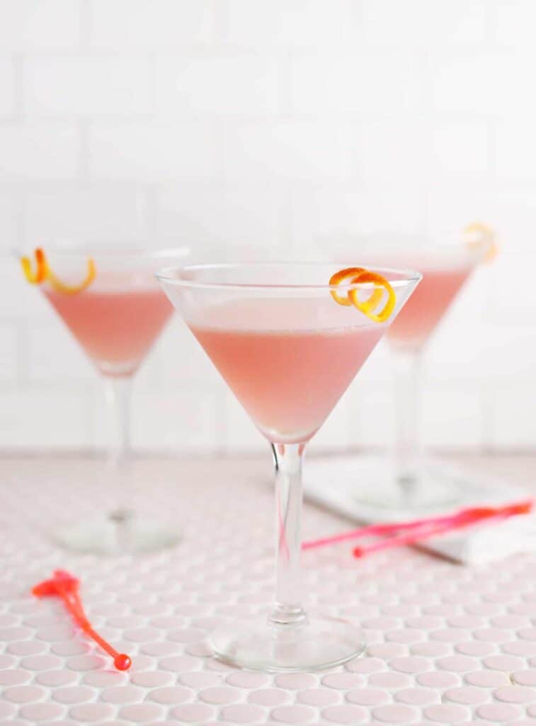 This easy cosmo recipe is a balanced pink cocktail (not too sweet, not too bitter) of Citron vodka, lime, and cranberry juice. It feels fancy and reminds us of Sex and the City.