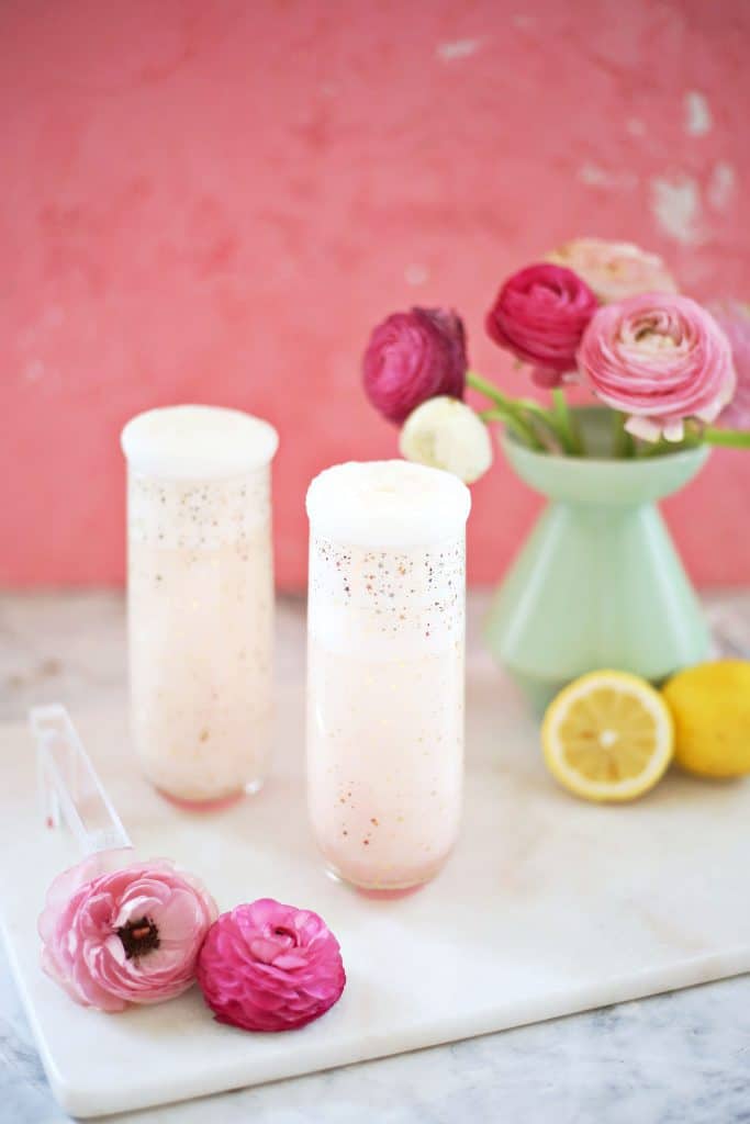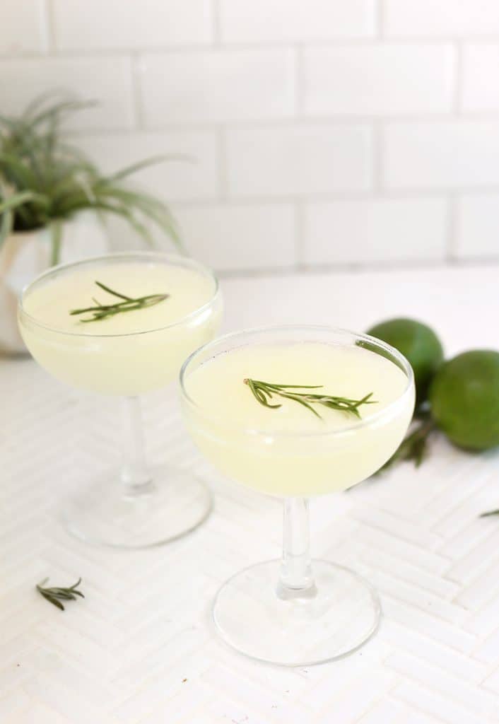 This cocktail is an upgrade from the classic Tom Collins with ingredients like chamomile flower-infused honey syrup and elderflower liqueur. And, it’s so pretty inside a daisy glass.