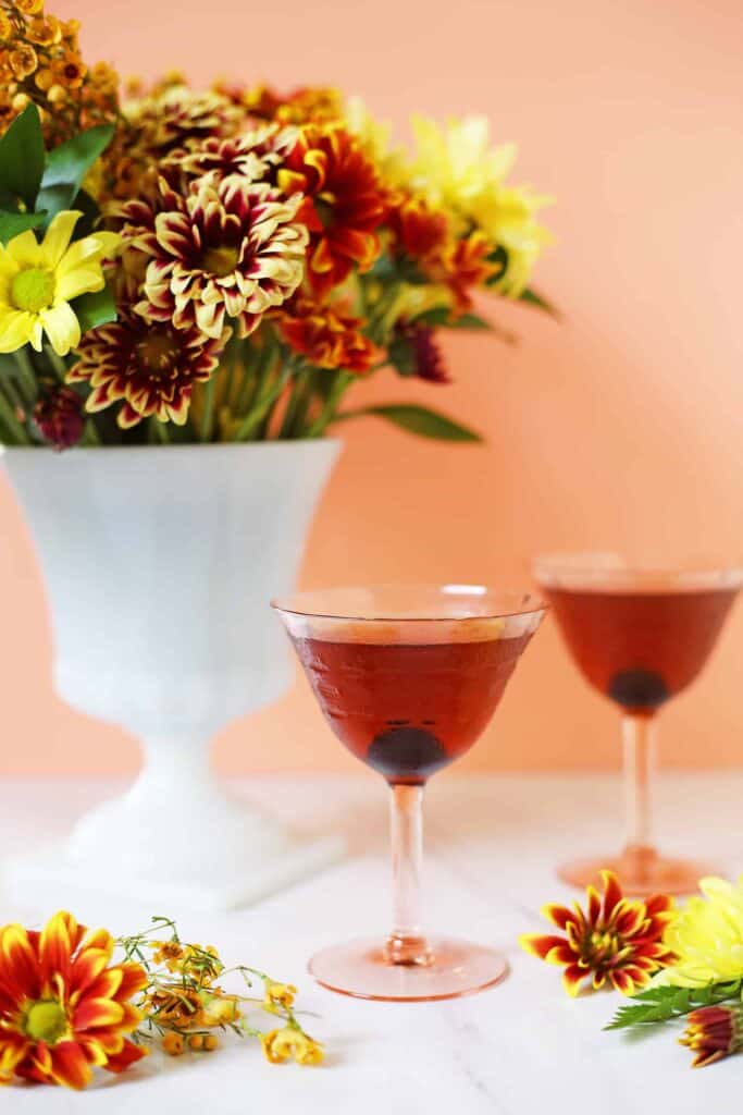 A classic, foolproof Manhattan cocktail made with American whiskey, Italian vermouth, and aromatic bitters. Adding a decadent Luxardo cherry can really elevate this cocktail!