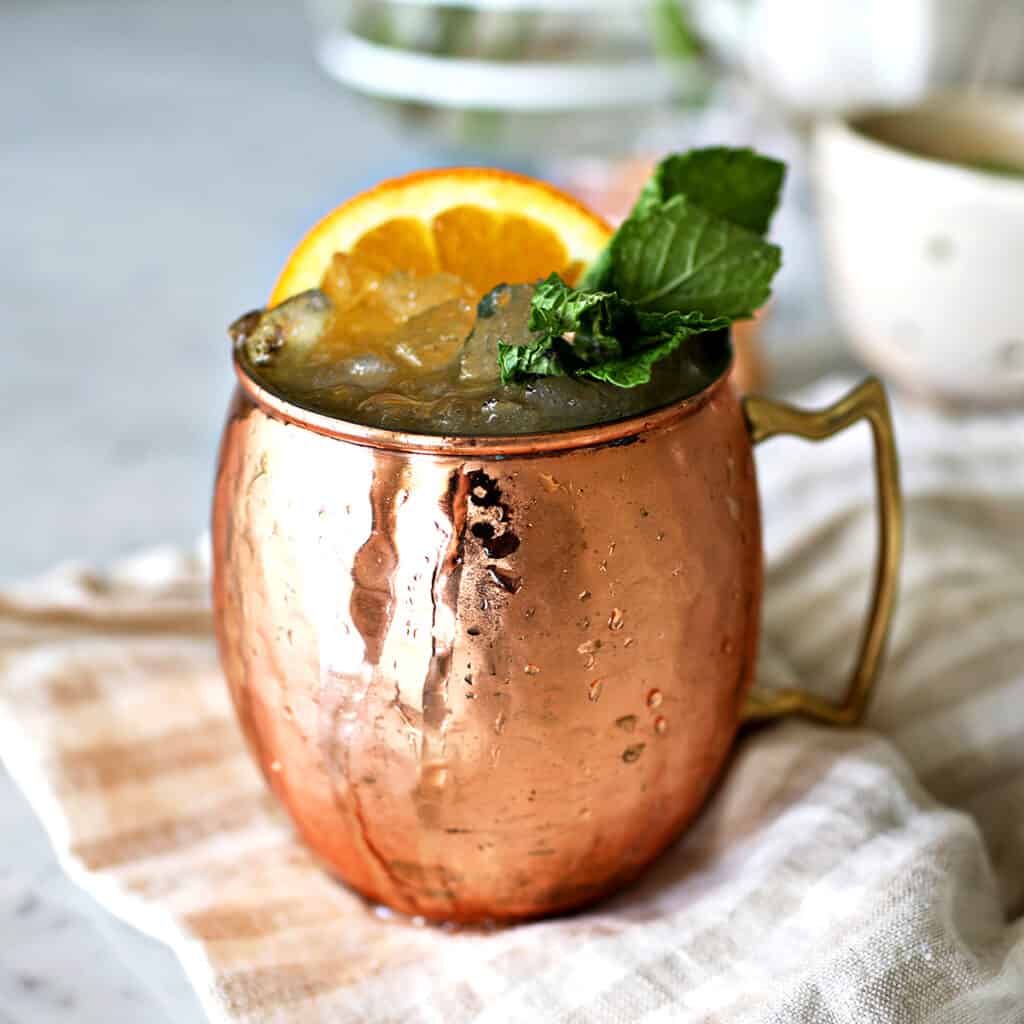 The Mexican mule is a tequila-based cocktail made with ginger beer, tequila and lime juice. This drink is easy to make, flavorful, and bubbly. Garnish with an orange slice and mint.