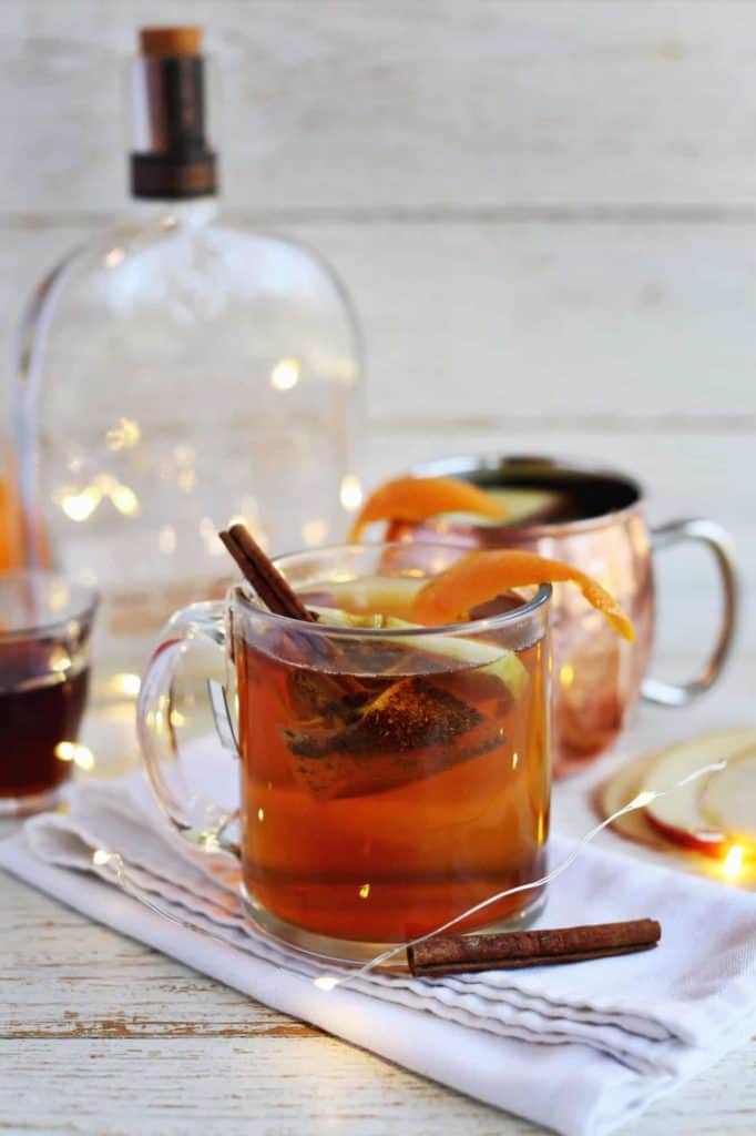 When we aren’t enjoying our go-to hot toddy recipe, we like to make a three-ingredient apple cinnamon hot toddy using our favorite cinnamon tea. This drink is also a great mocktail.