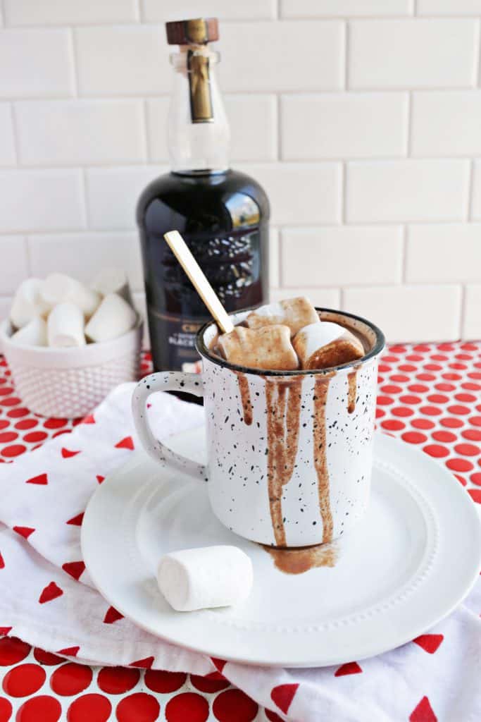 Warm up with a cup of delicious spiked hot chocolate. You could even enjoy this drink with s’mores for an indulgent treat. This recipe is non-dairy, but you will never know!