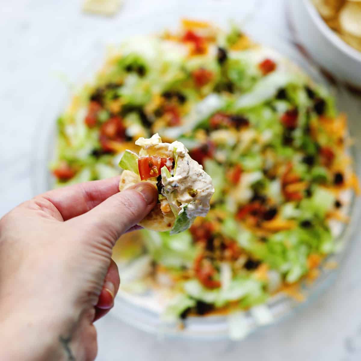 Solid, easy taco dip recipe to reference. The substitution ideas a great suggestions!