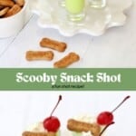 Legend has it that the Scooby Snack shot got its name from a beloved (discontinued) fruit snack by the same name and the same bright green color. I’ve also read it was named after Shaggy’s green shirt or the Mystery Machine Van, which are bright green. The true origin will remain unsolvable, but people will continue to make this recipe, so cheers to the mystery!