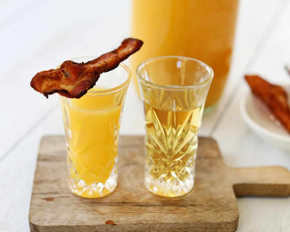 - Enjoy the shot first, then the orange juice and bacon as a chaser.