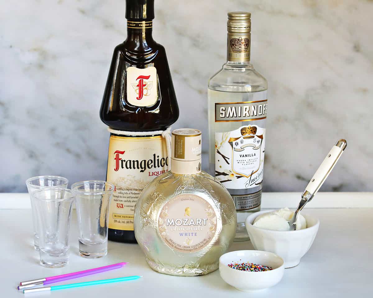 - White Chocolate Liqueur – This is what gives the shot its nice white color and adds a creamy texture.
