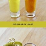 A Tequila Pickleback Shot is a pairing of two shots. The first is a shot of tequila. The second is a shot of pickle juice which makes a fun and flavorful chaser.