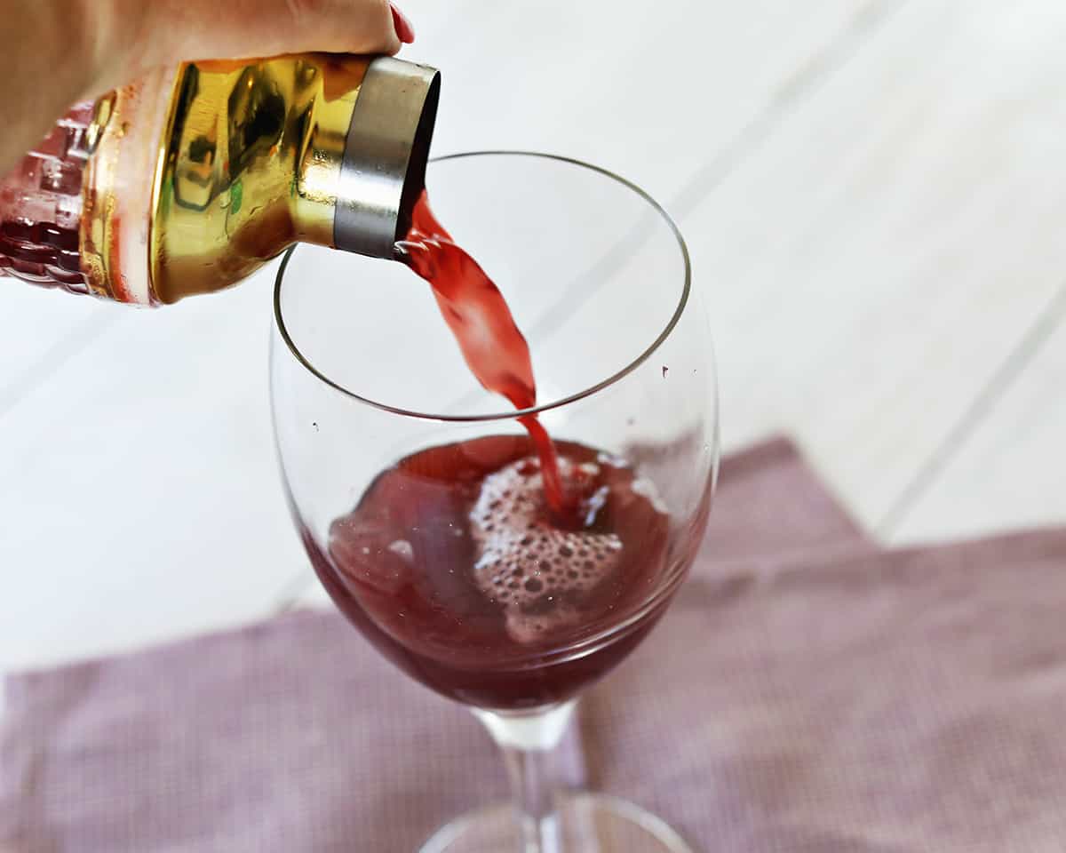 - Pour the mixture into a wine glass or a cocktail glass of choice.