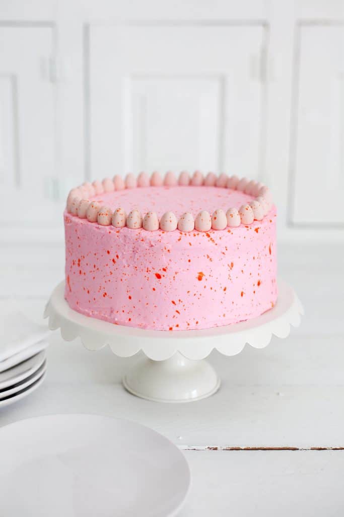 A dessert recipe inspired by Cadbury eggs. This cake is the perfect centerpiece for your Easter brunch.
