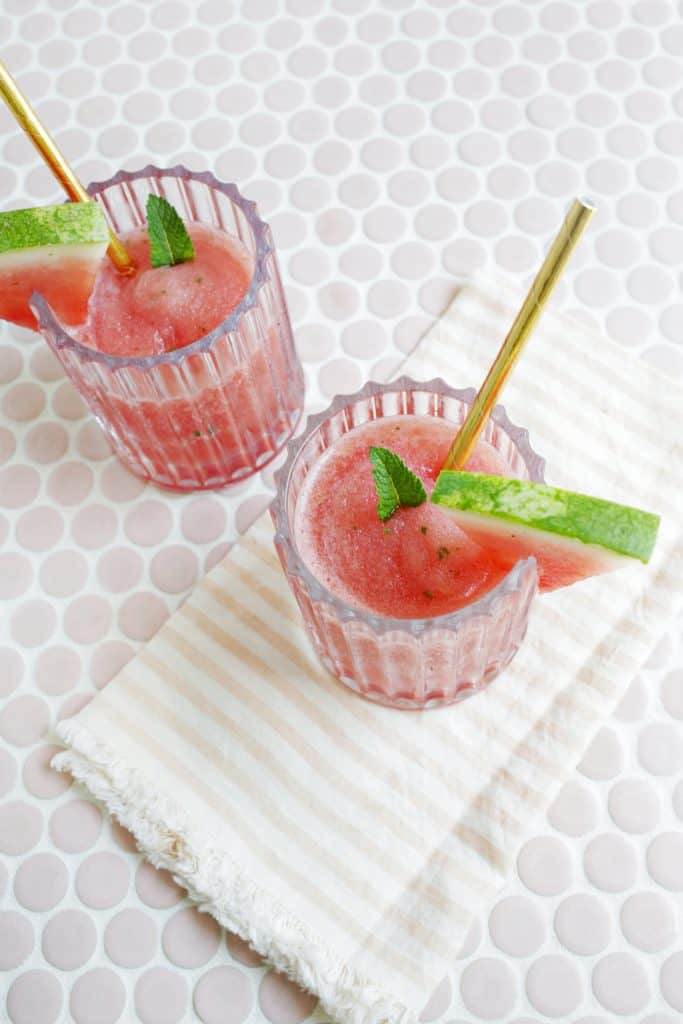 An easy recipe for a watermelon smoothie. This refreshing recipe feels like springtime in a glass.