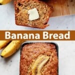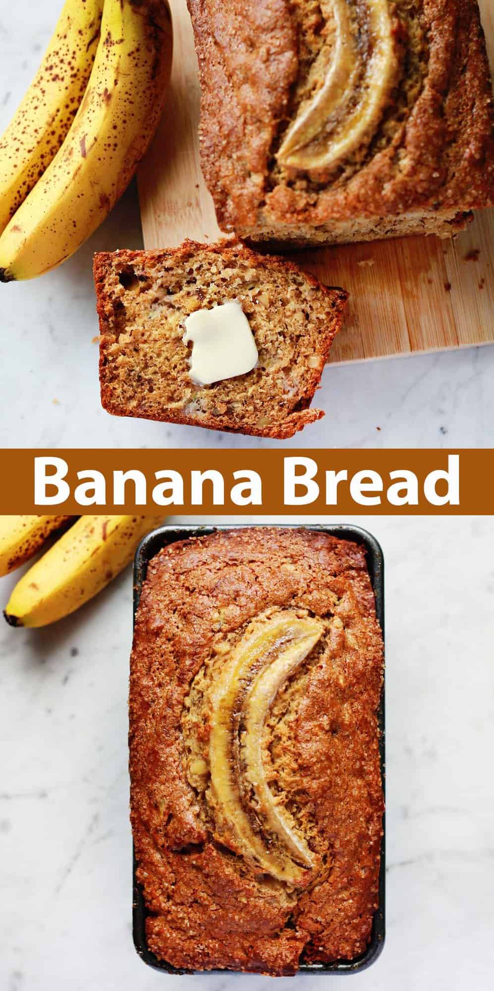 And this homemade banana bread recipe is my favorite! It’s easy, foolproof and exceptionally delicious. When I bake this banana bread, it doesn’t last long at our house as it’s one of my husband’s favorite desserts as well.