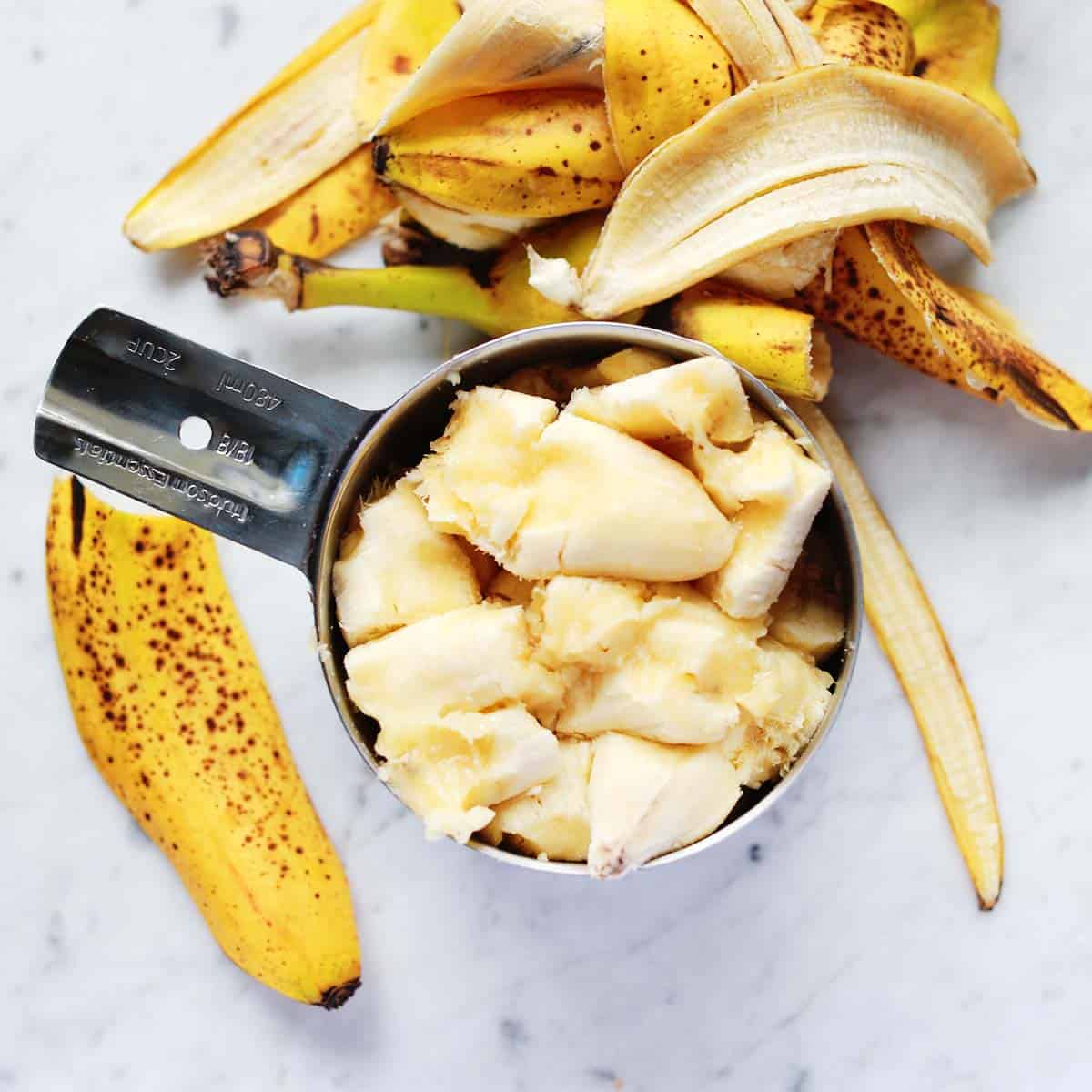 - First, peel and mash the ripe bananas in a small bowl. Set aside until you need them.
