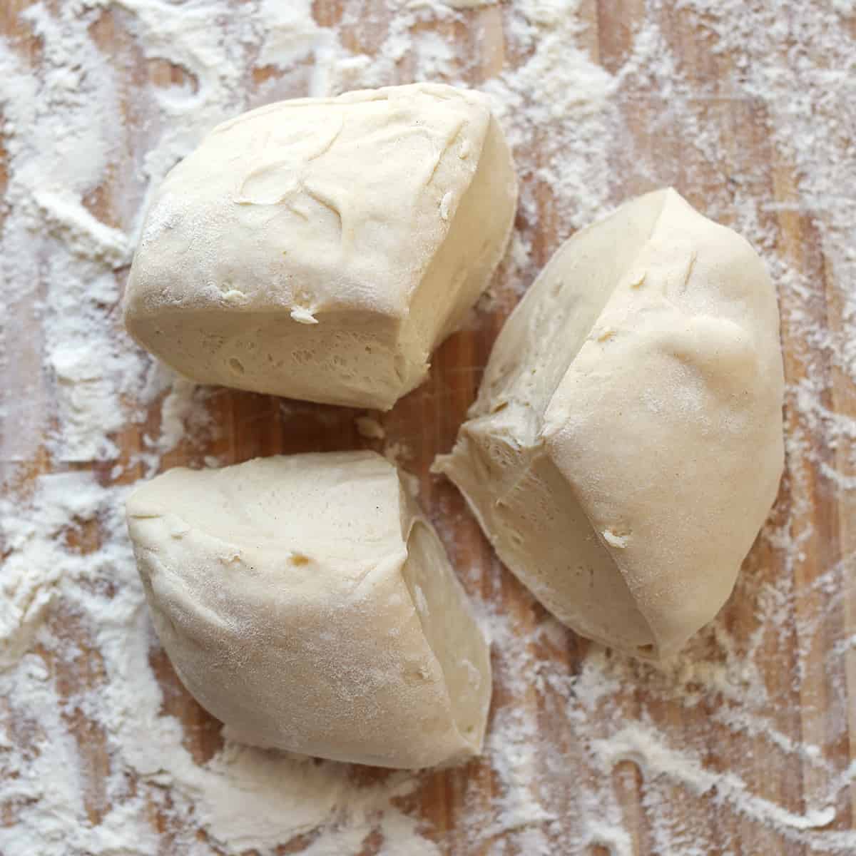 For an easy calzone recipe, use one of the store-bought options below. But, if you are looking to make calzone from scratch, here are few pizza dough recipes that can work well: