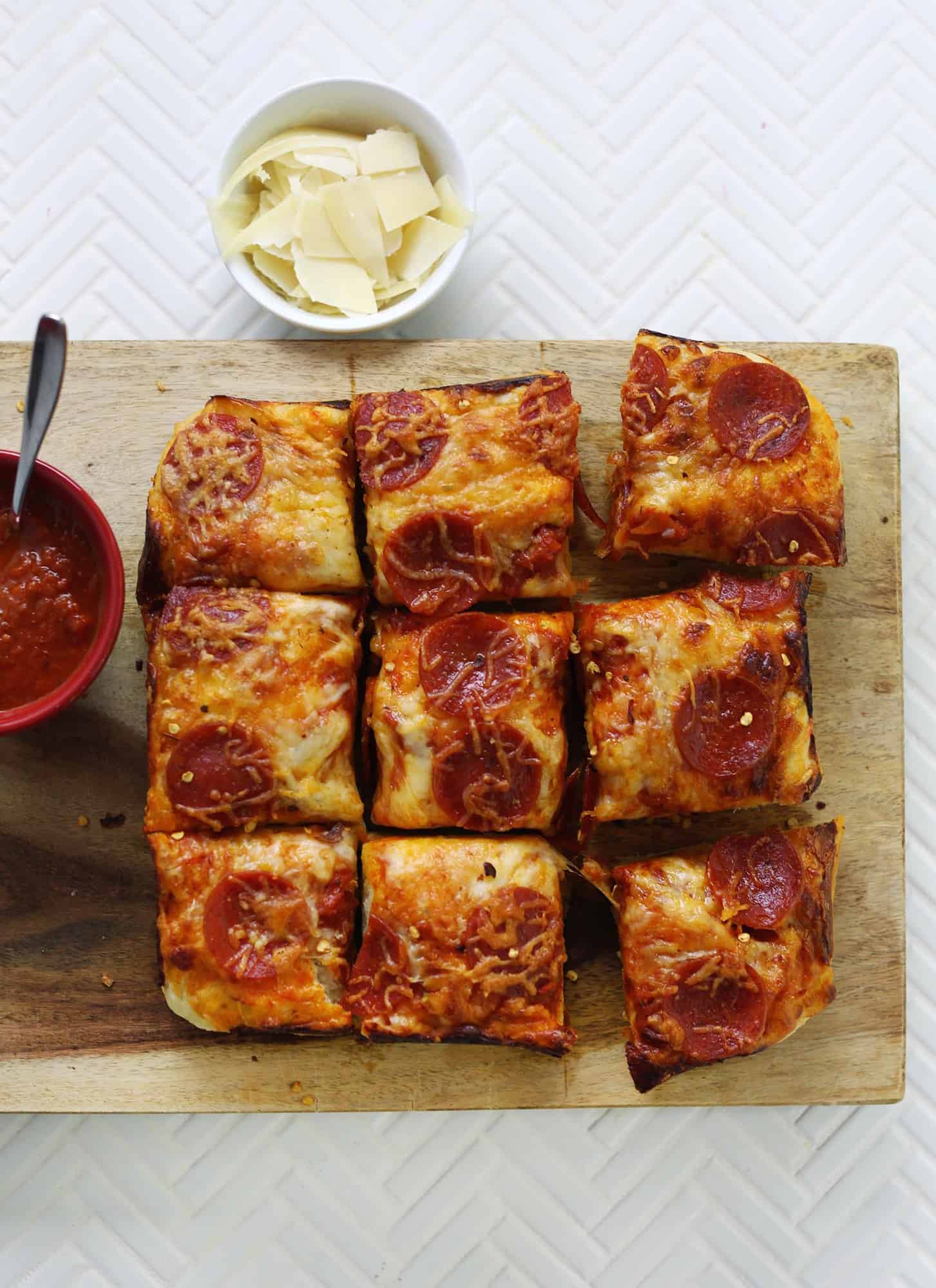 Oh man this looks SO good, and easy! Love that you don’t need any fancy pizza tools and you just need a square pan. Trying this asap.