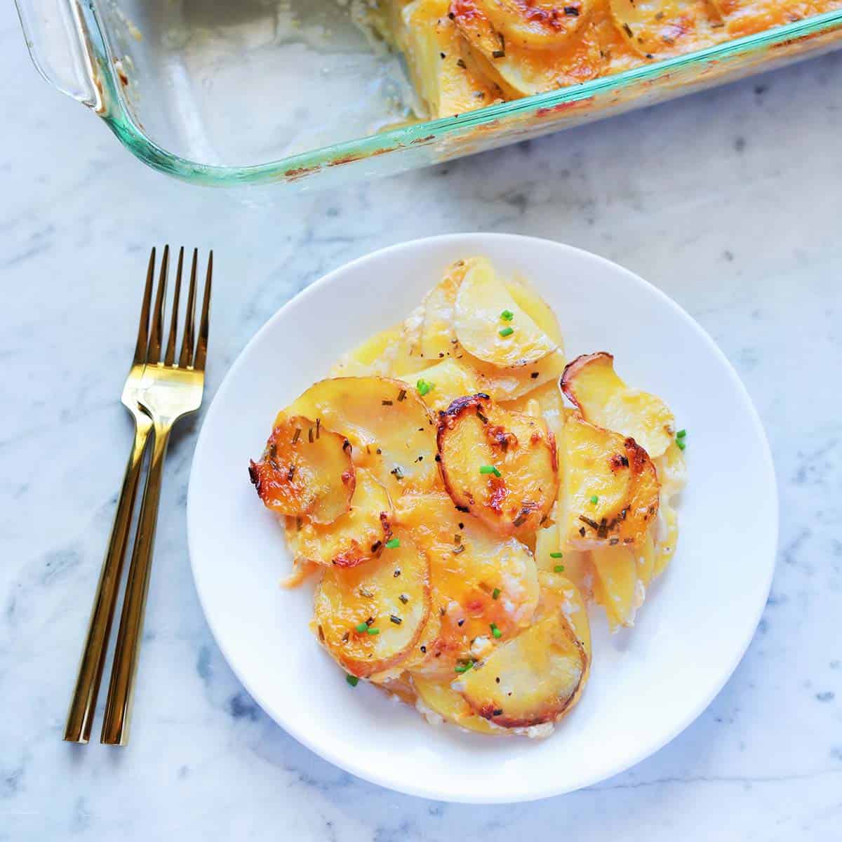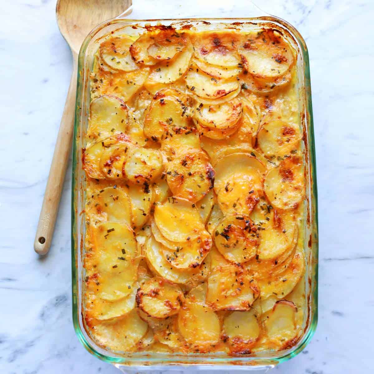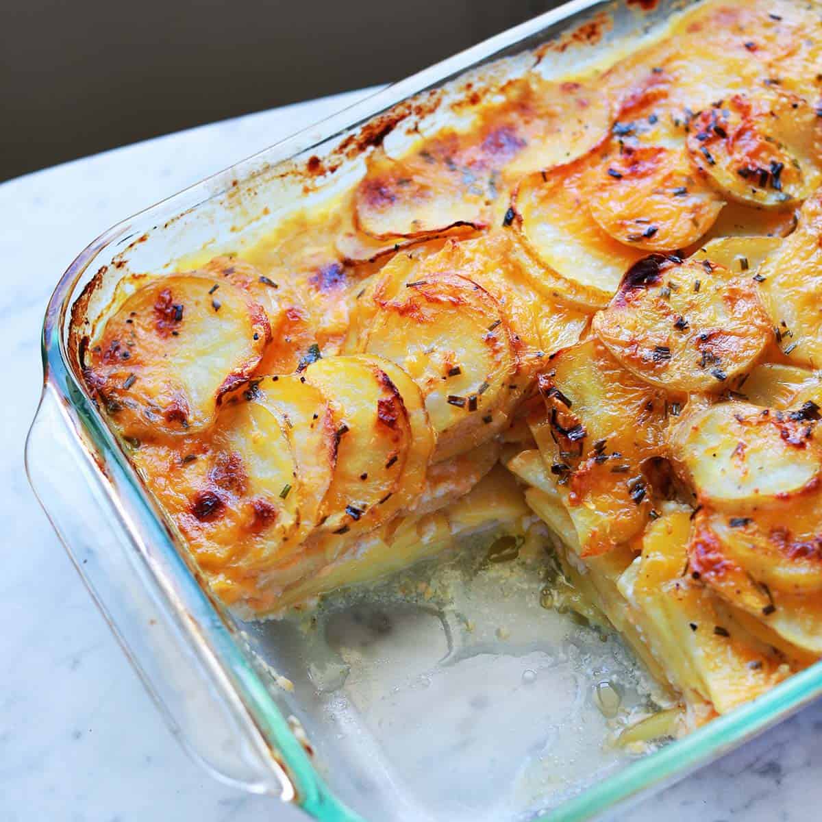 Dear Scalloped Potatoes, you’re great. I love your crispy edges and creamy, cheesy center. You feel fancy but you’re simple to make with very little prep. You might be my favorite potato side dish at the holiday dinner buffet. You’re a classic! Mashed potatoes are great but you’ve got so much more texture going and you taste like a sunrise made of cheddar. Consider this a love letter to you, scalloped potatoes, because it is.