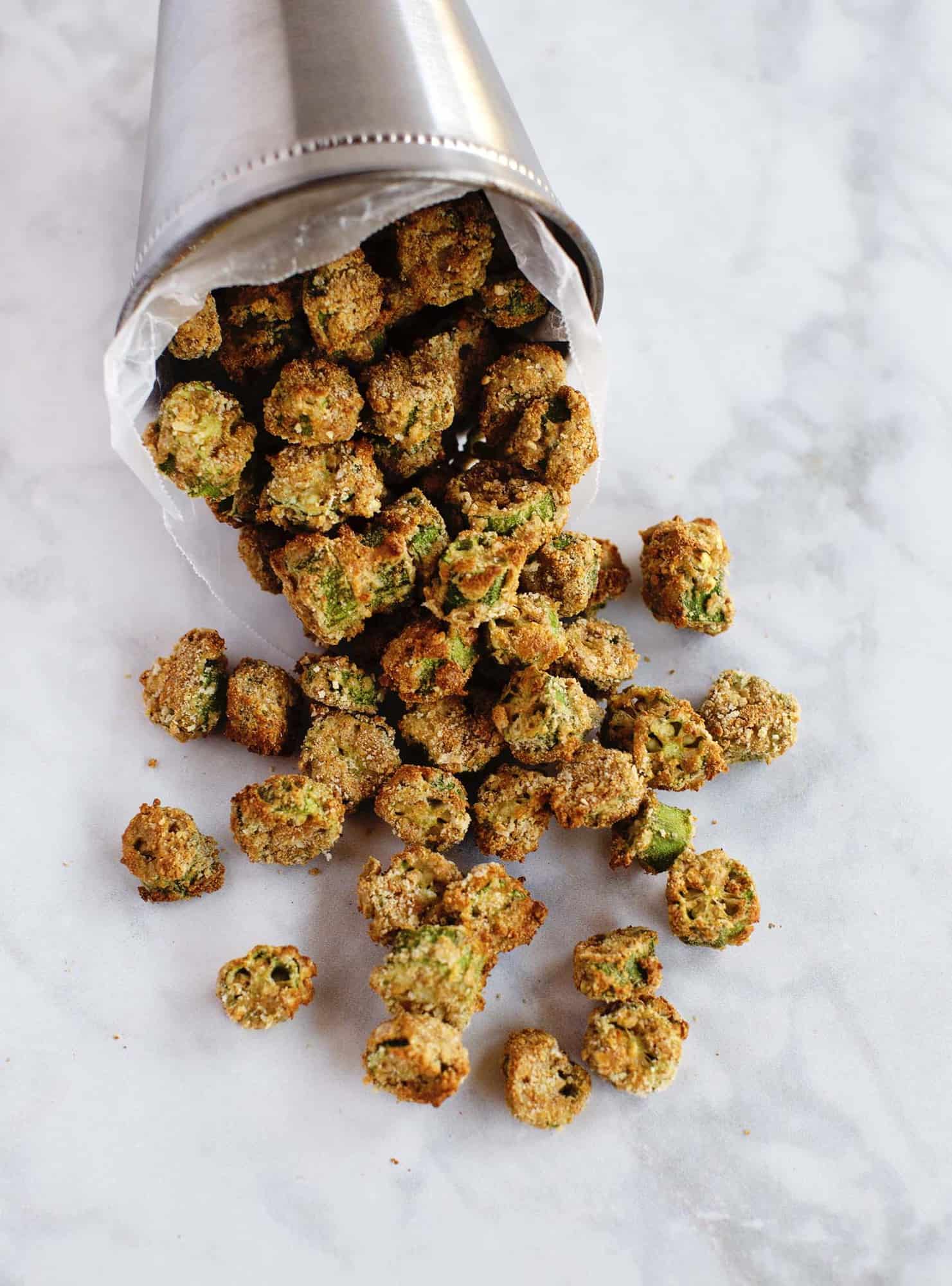 And it still takes very little oil (so not overly fatty like deep fried okra) and I’m also sure you could find and use gluten-free breadcrumbs if you wanted to go that route, too.