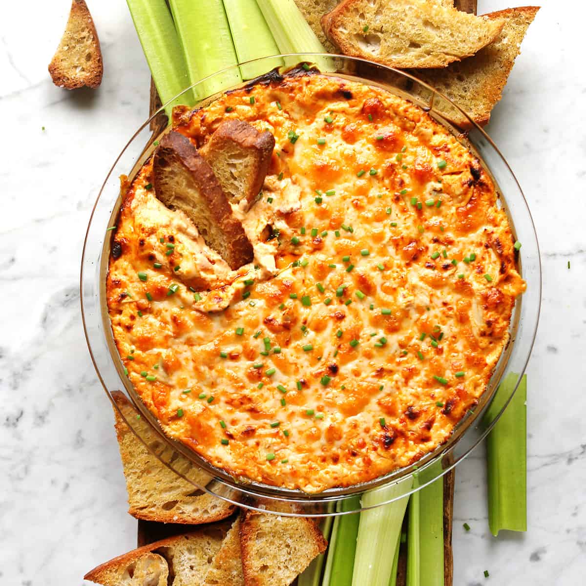 If you are in need of a crowd-pleasing baked dip recipe, look no further than this buffalo chicken dip.