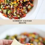 Cowboy Caviar tastes like Pico De Gallo with beans and more vegetables (such as peppers and corn) added to it. It’s a hearty salad you can eat with tortilla chips.