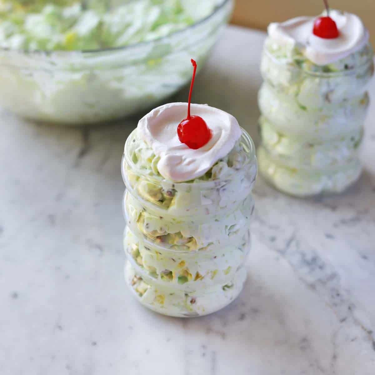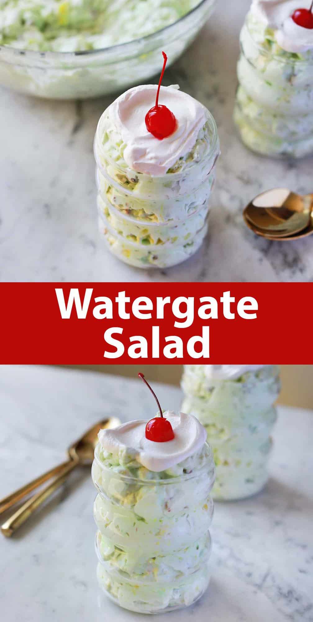 Some call this Watergate salad recipe by other names like Pistachio Dessert Salad or even Pistachio fluff. The name Watergate salad comes from the fact that this side dish has similar ingredients and flavor to Watergate cake. And both recipes were created around the time of, you guessed it, the Watergate scandal.