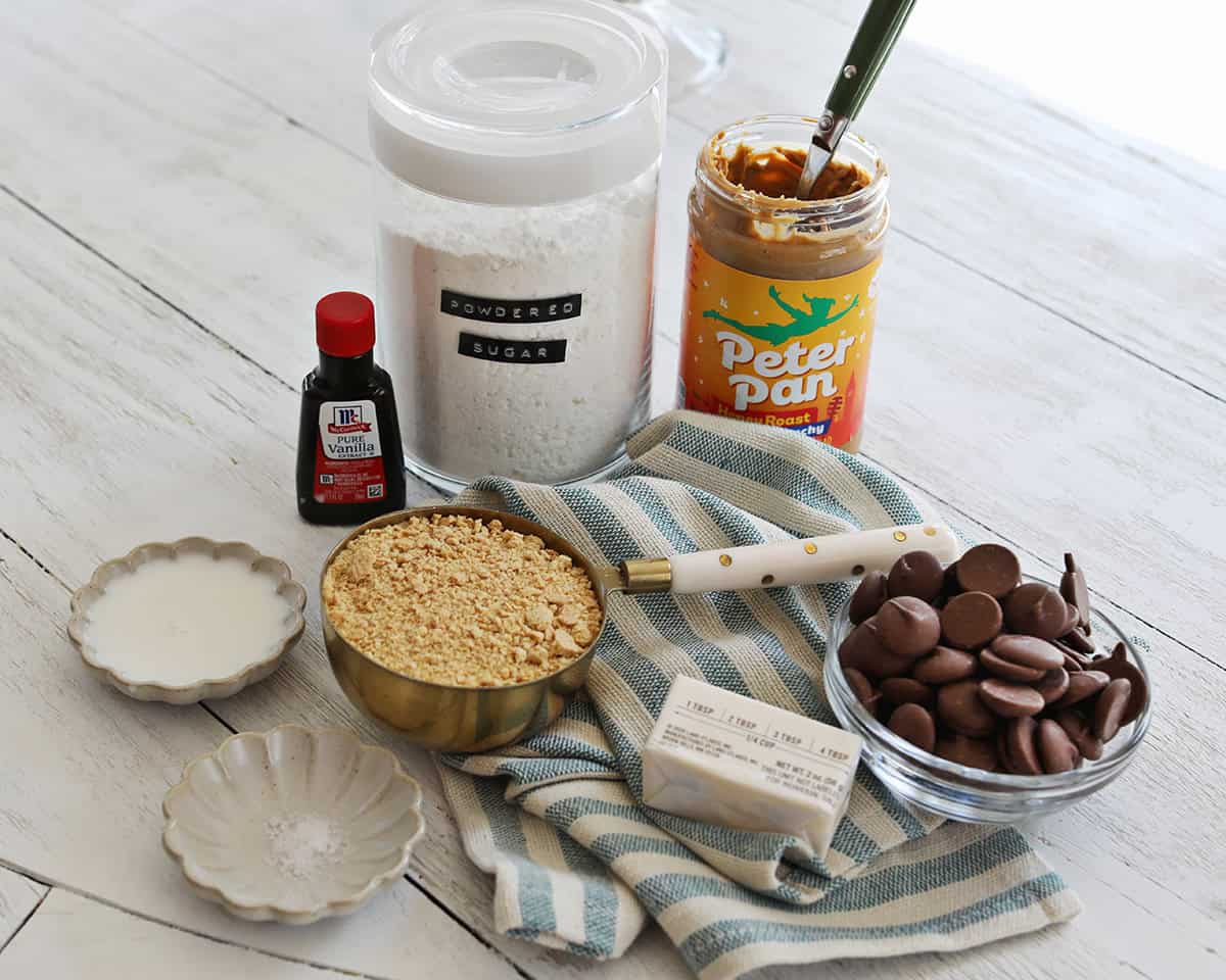 Slowly add powdered sugar, graham cracker crumbs, milk and vanilla extract to the peanut butter mixture as you mix the batter at medium speed.