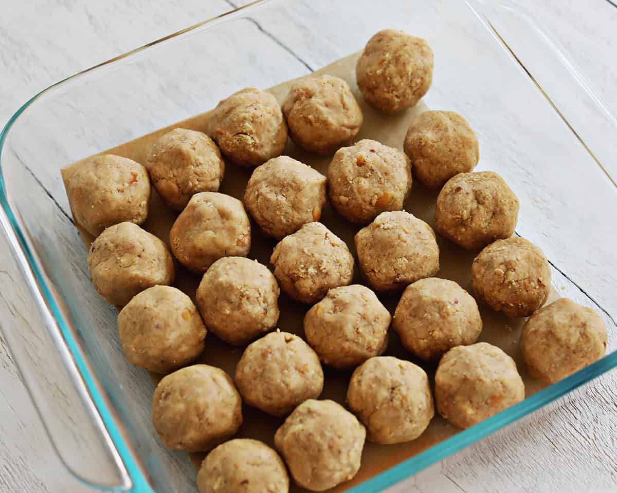 This recipe makes 20-25 balls depending on how large you make them. If you are a perfectionist, you can use a dough scooper to measure out each ball. I personally like to eyeball it.