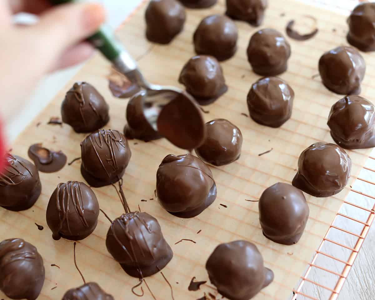 - If you want to dip your balls all in one step, try using a spiral dipping tool or a fork.