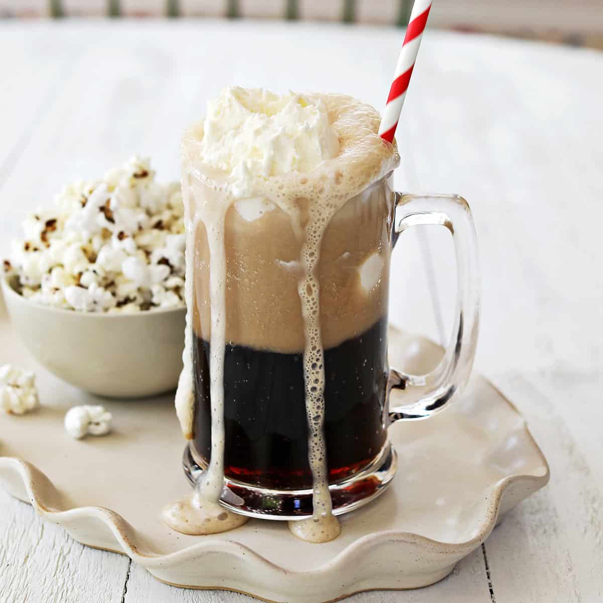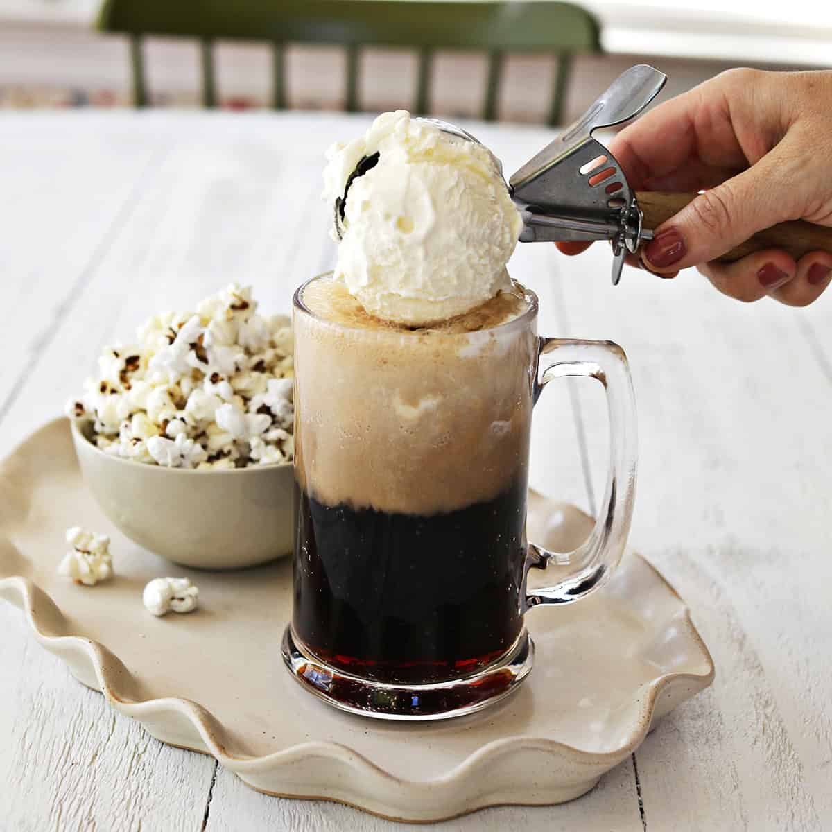 Personally, I like to pour the root beer first and top it with a scoop of ice cream. This method, while it has more risk of overflowing, has more contrast between the dark soda and ice cream—it’s a little prettier.